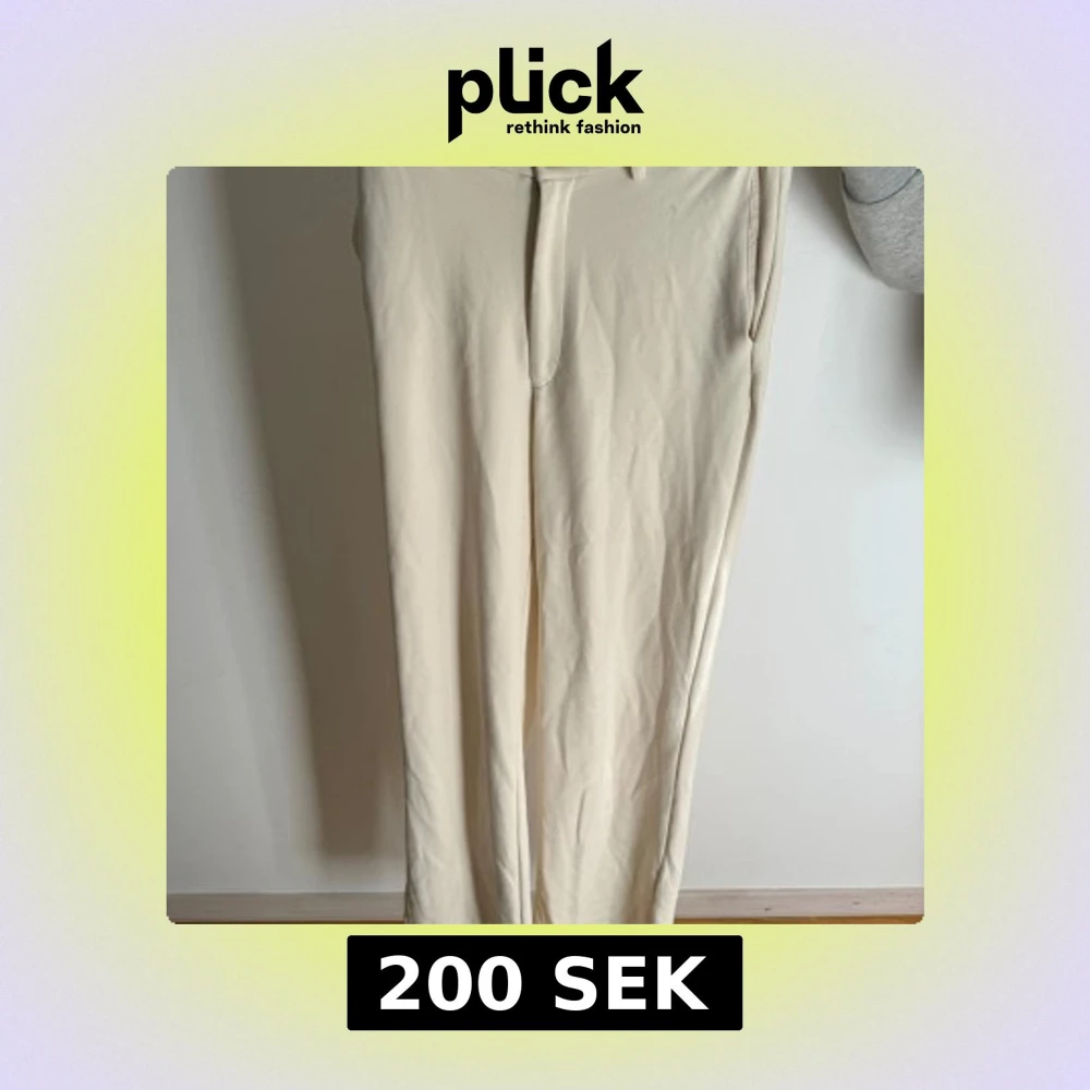 Stilrena beige kostymbyxor med raka ben och hög midja. Byxorna har bälteshällor, sidofickor och stängs med knapp och dragkedja. Perfekta vardags byxor då de är i ”mjukis” material. Perfekt om man vill vara bekväm men endån stilren😍