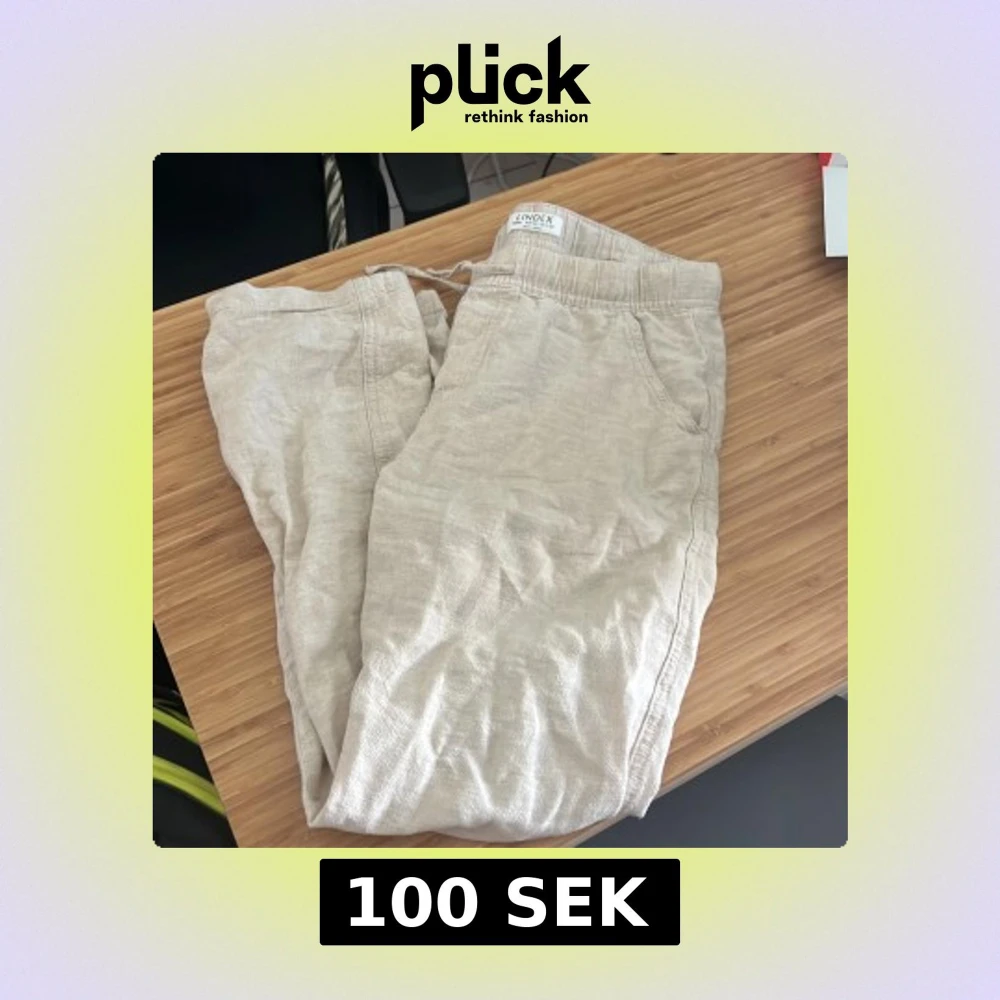 Snygga och luftiga beiga linnebyxor från Lindex med resår i midjan och dragsko. Perfekta för varma dagar och har en avslappnad passform med raka ben. Byxorna har sidfickor och är tillverkade i ett tunt, svalt material. STORLEK: EUR -UK 11-12Y STORLEKEN NEDANFÖR STÄMMER TROLIGEN EJ!