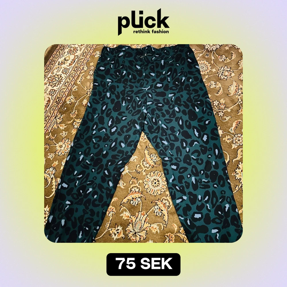 Säljer ett par coola byxor från Lindex i storlek XL. De har ett leopardmönster i svart och grönt, perfekt för att sticka ut lite extra. Byxorna har en loose passform och är superbekväma. Perfekta för både vardag och fest!