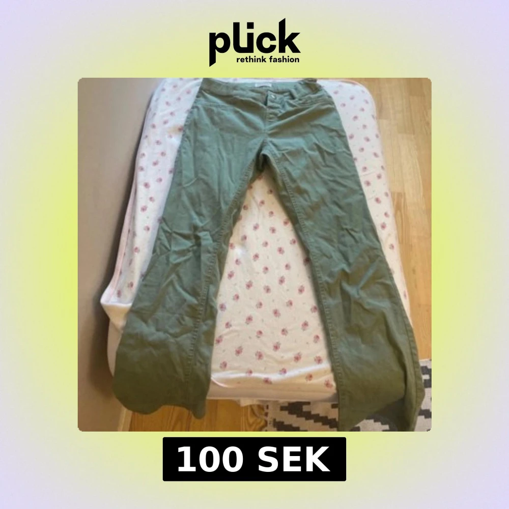 Gröna snygga bootcut jeans som tyvärr blivit lite för korta för mig som är 160:( dom är köpta på Vinted men jag tycker inte att dom verkade använda när jag fick dom och jag har knappt använt dom då dom var nästan försmå när jag fick dom🩷buda gärna men var trevlig om ni vill få köpa tack🫶från Lindex eller h&m tror jag