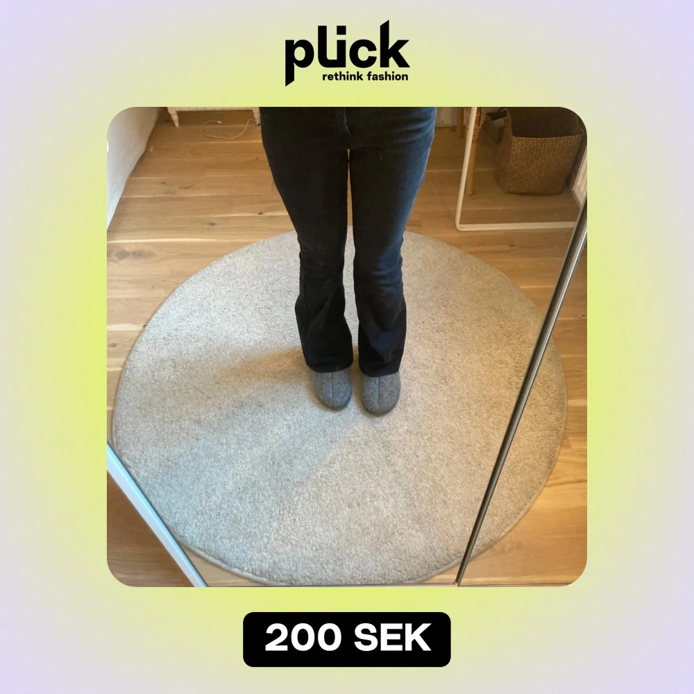 Säljer ett par snygga svarta bootcut jeans i jätte bra skick. De är lågmidjade och supersköna. Det står ingen storlek i dom men jag skulle säga att dom är xxs!💘