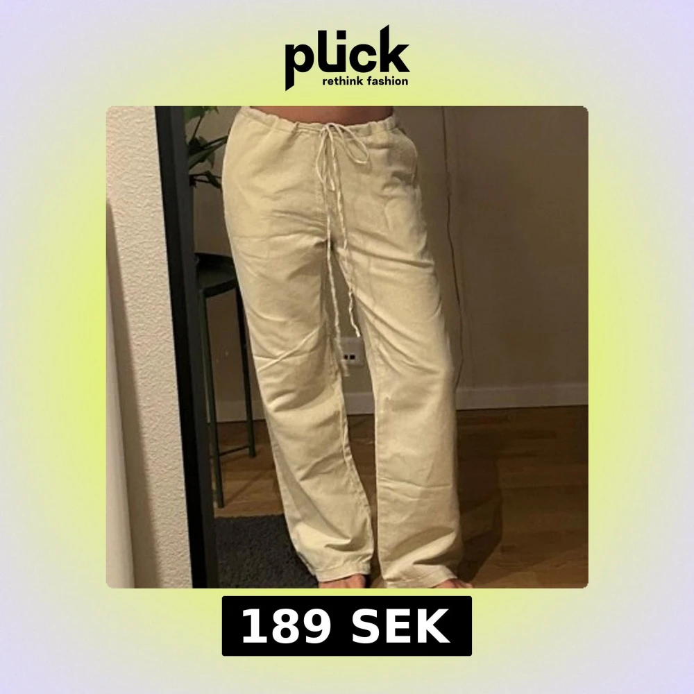 Snygga beige linnebyxor med avslappnad passform och snörning i midjan. Perfekta för en bekväm och stilren look. Byxorna har en rak och luftig stil som passar bra till varmare dagar.