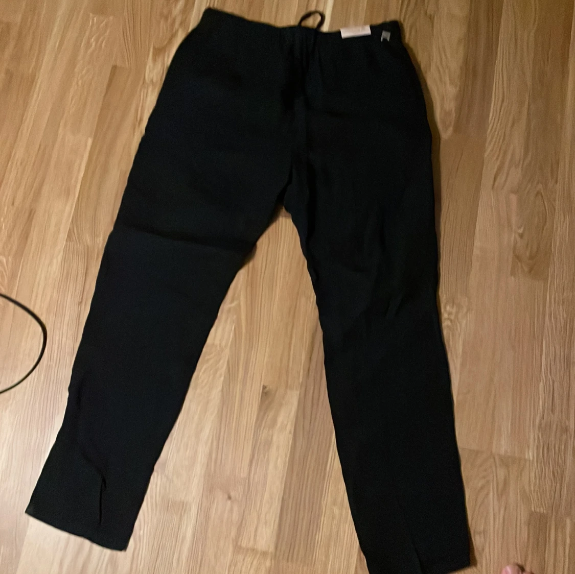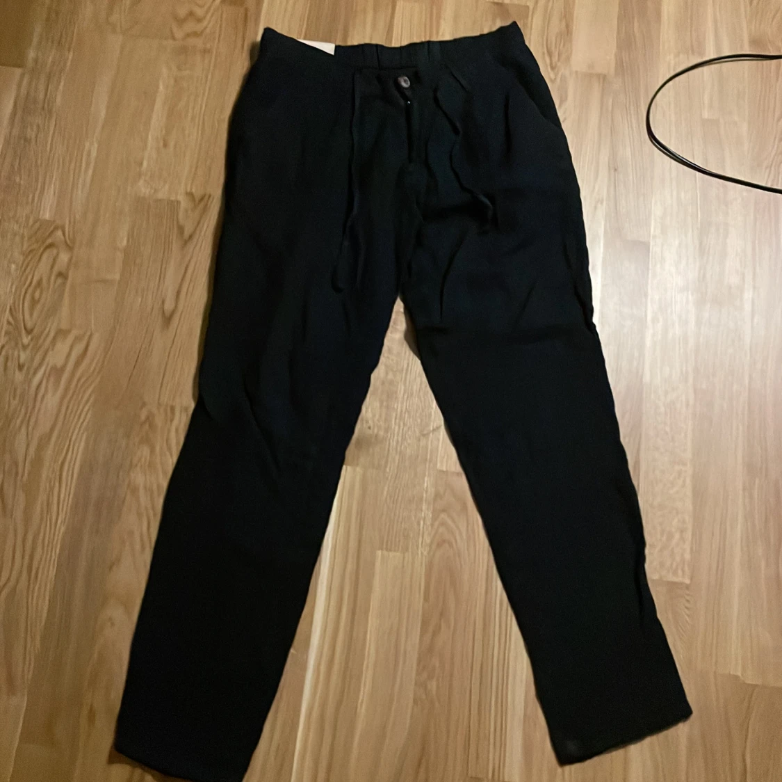 Snygga svarta linnebyxor från Triple A Luxury Vintage, tillverkade i Italien. Byxorna har dragsko i midjan, raka ben och är gjorda i 100% linne för en luftig känsla. Perfekta för dig som gillar stilrena och bekväma plagg med en avslappnad vibe.