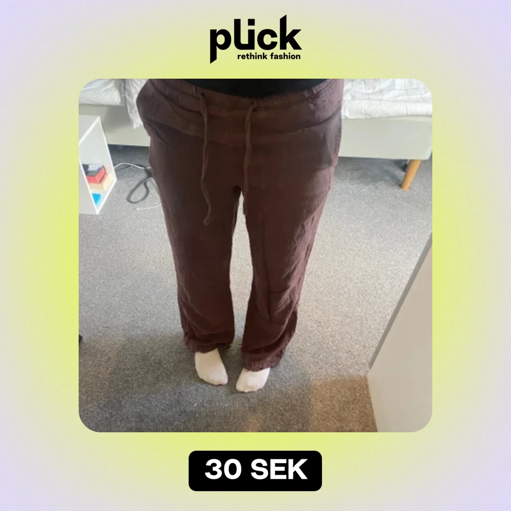 Bruna linne byxor som sitter jätte fint, dock lite sönder nere vid fötterna men syns inte