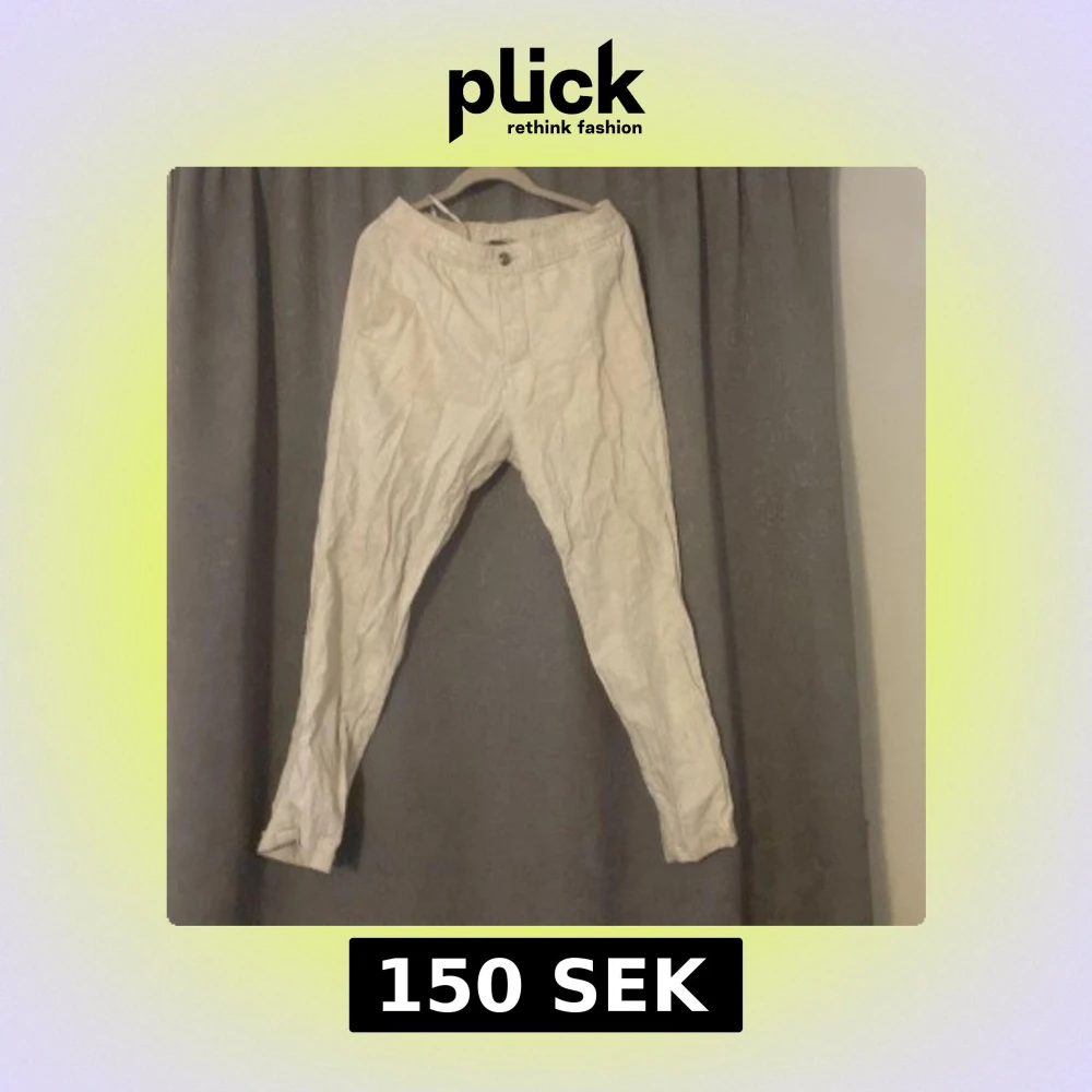 Säljer ett par beige byxor från H&M i regular fit. Byxorna har en knapp och dragkedja framtill och är tillverkade i ett lätt och bekvämt material.