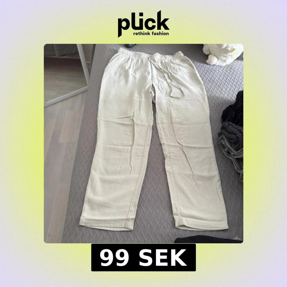 Snygga och luftiga beiga linnebyxor med elastisk midja med snörning. Perfekta för varma dagar och ger en avslappnad vibe. Materialet är linne som känns svalt och skönt mot huden.