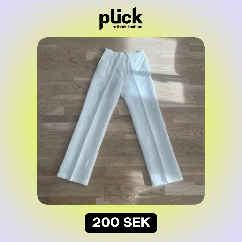 Linnebyxor med knapp och knytning. Brodyrdetalj på vardera ficka. Använd 1-2 gånger, nyskick. Passar XXXS-XS. Köptes i mòyys egna butik utomlands för ca 1 000 SEK.