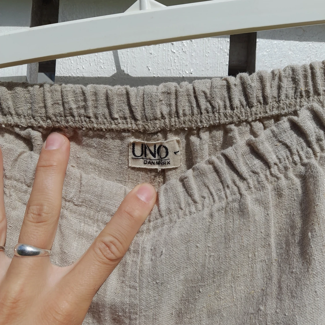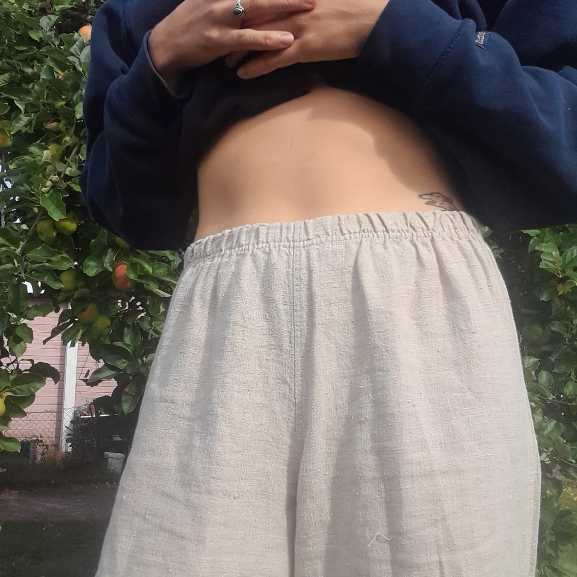 De skönaste och snyggaste byxan som passar till typ allt. Har två av exakt samma å de känns lite onödigt. Hög i midjan, eller låg om man vill. Från danska märket Uno. Står ingen storlek men de är resår i midjan så passar allt från 34-38 skulle jag tro