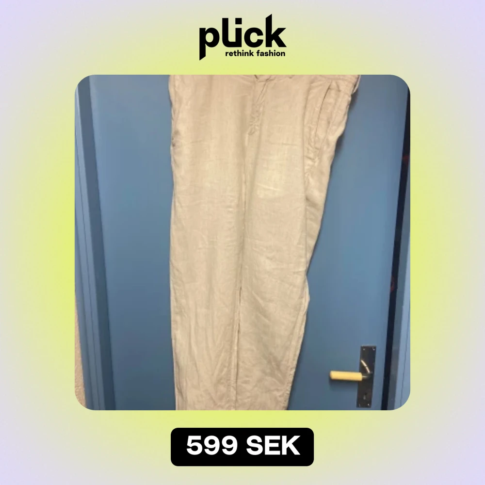 Säljer ett par ljusa linnebyxor i storlek 40 (eu). Det är runt 30 i jeans storlek. I väldigt bra skick. Även lite tjockare material och inte de tunna hm materialet.