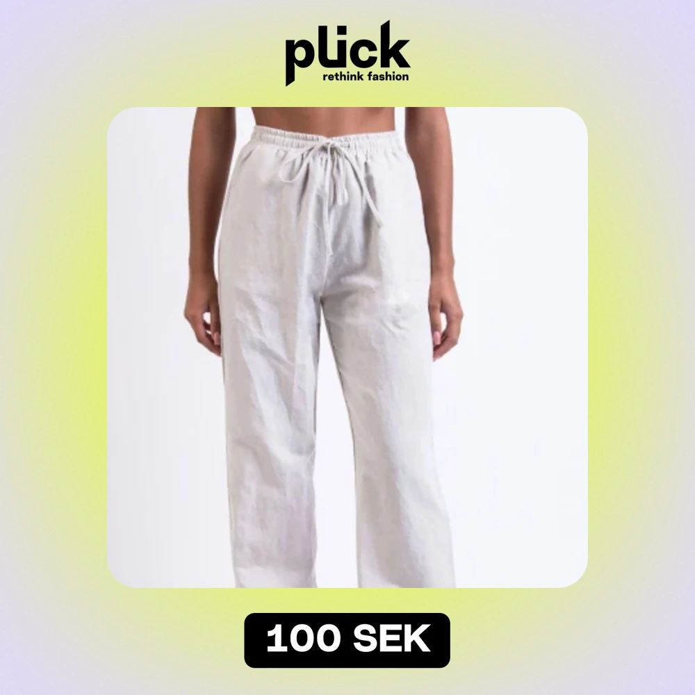 Beigea linnebyxor från madlady, köpte 2022. Modellen Lou som inte finns kvar längre. Sitter jättefint men har tyvärr blivit för korta för mig som är 163.
