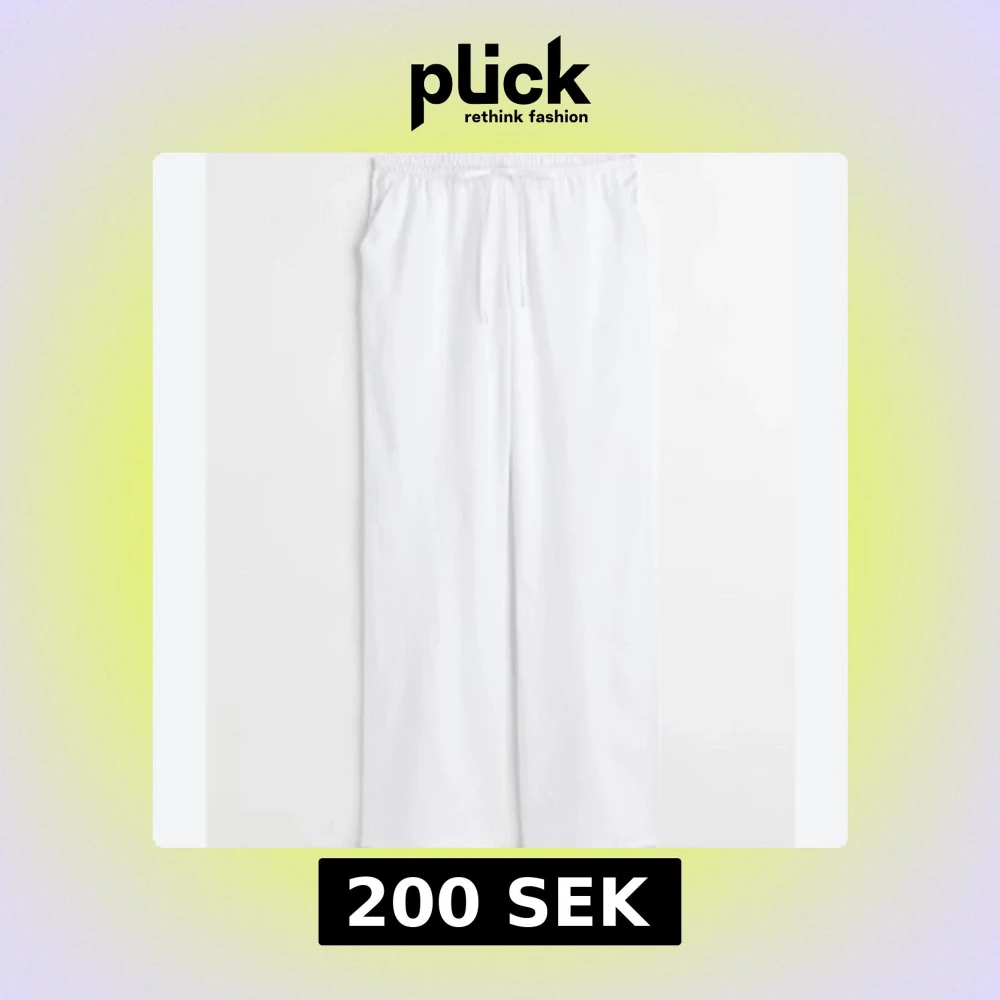 Säljer ett par fräscha vita linnebyxor med bred passform och dragsko i midjan. Byxorna har elastisk midja och raka, vida ben för en chill och avslappnad look. Perfekta för dig som gillar bekväma och stilrena plagg.