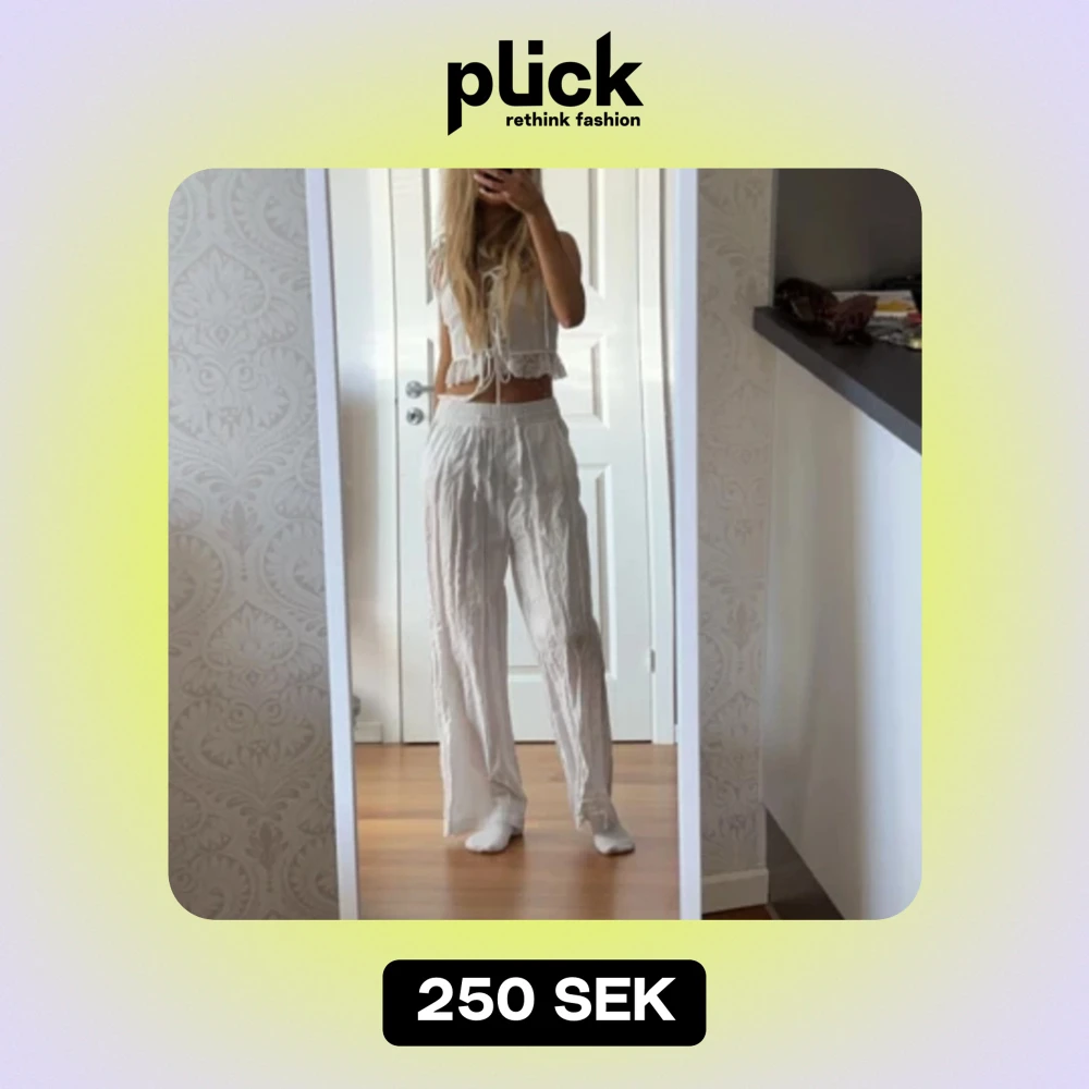Linnebyxor från ginatricot, storlek 32 men passar mig som vanligtvis har S i byxor. Ett litet håll längst ner på innersidan av byxbenet (se bild 2) men det är inräknat i priset☺️