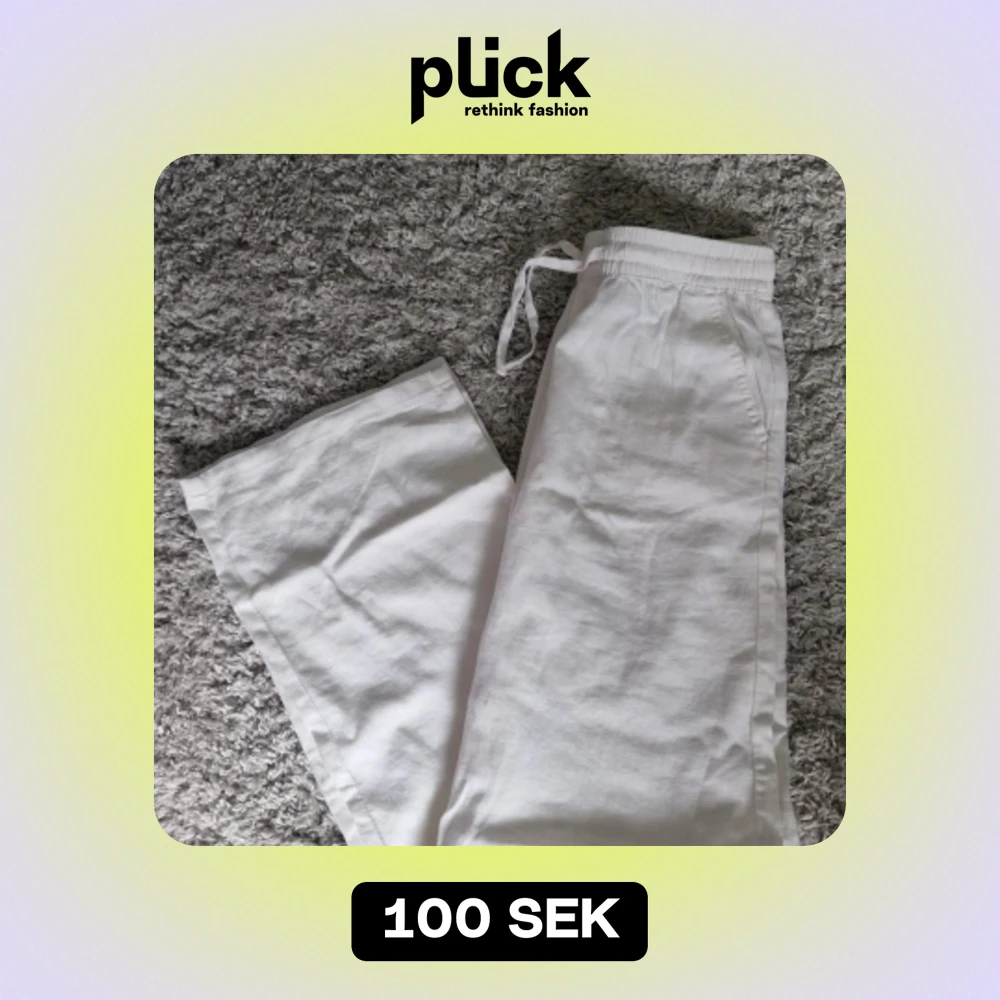Ett par linnebyxor från ullared i storlek 170, passar S. Använda en gång, säljer pga att jag köpte ett par andra linnebyxor som passade mig bättre.