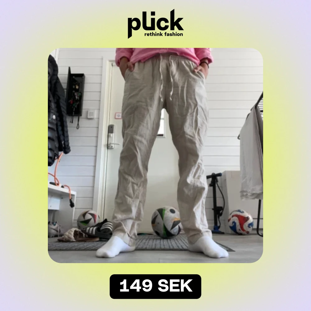 Säljer dessa feta linnebyxor från Cubus. Använda ganska många gånger. Skick 8/10, de är endast använda så de ser lite skrynkliga ut annars i utmärkt skick. Modellen på bilden är 174.