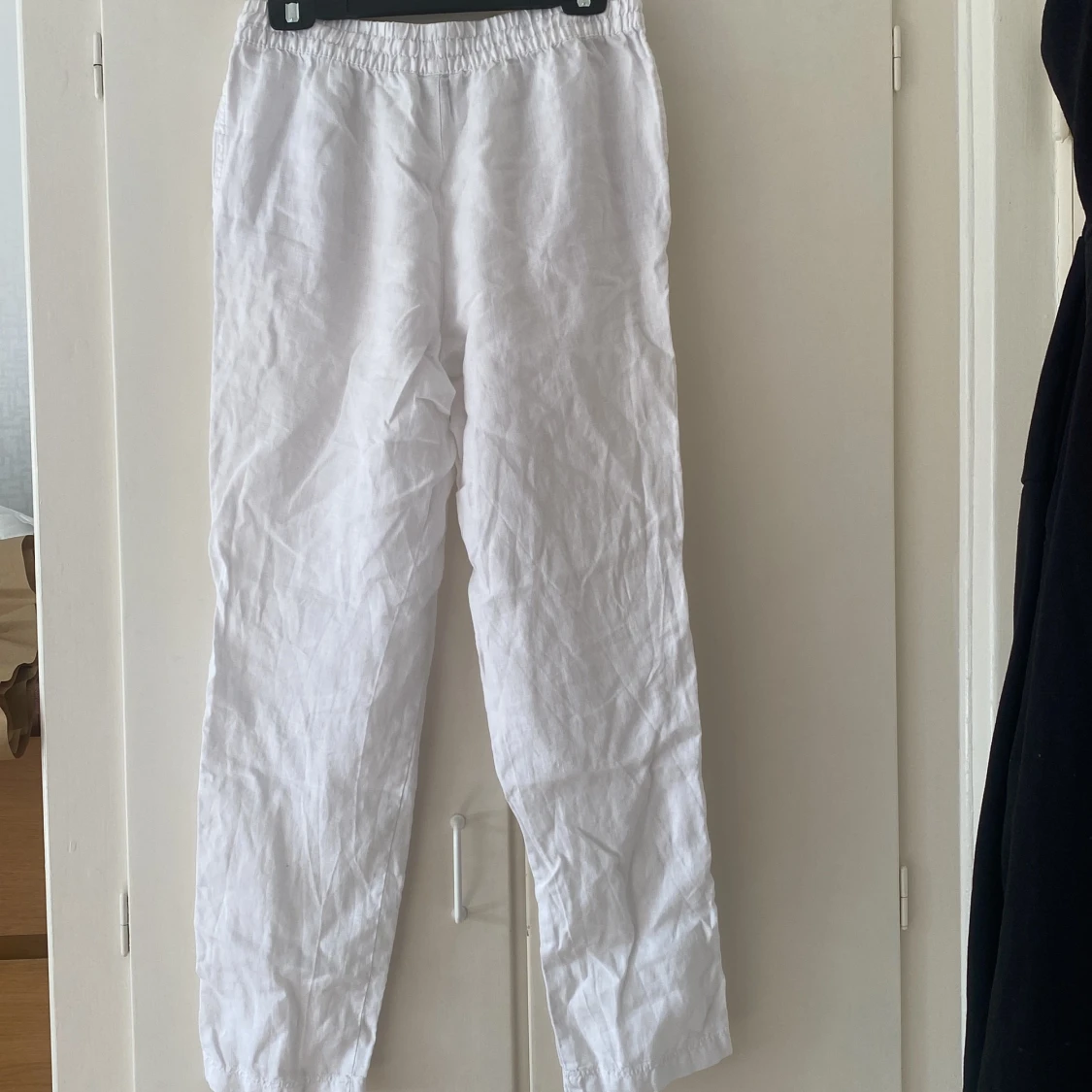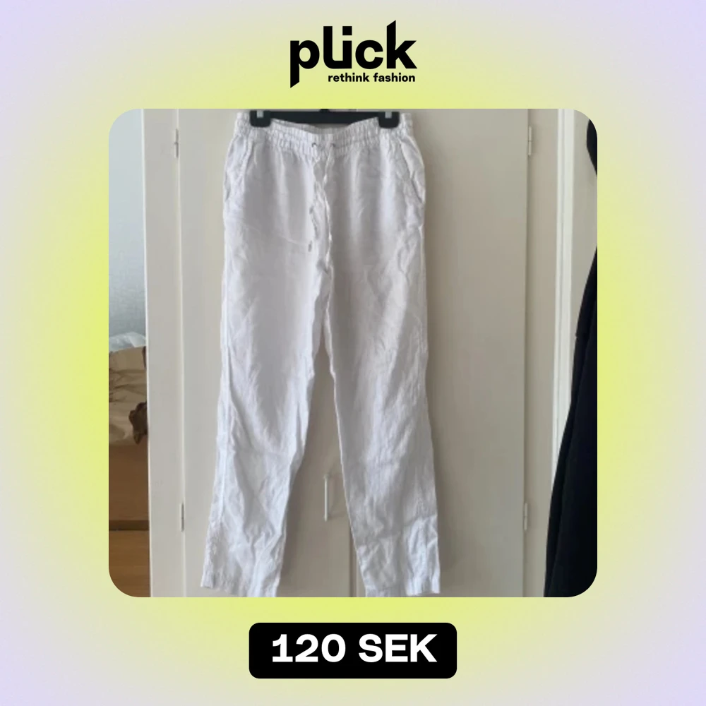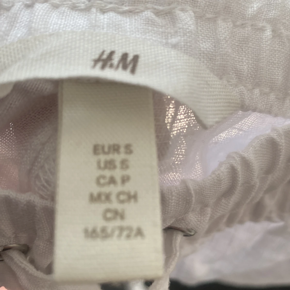 Linnebyxor från H&M⭐️ Vita linnebyxor i storlek S, säljs pågrund av att de inte passar, använda mycket men fortfarande fint skick, enda defekten är att det blivit små märken i tyget, skriv för bilder Säljer för 120kr + frakt⭐️ Pris kan diskuteras