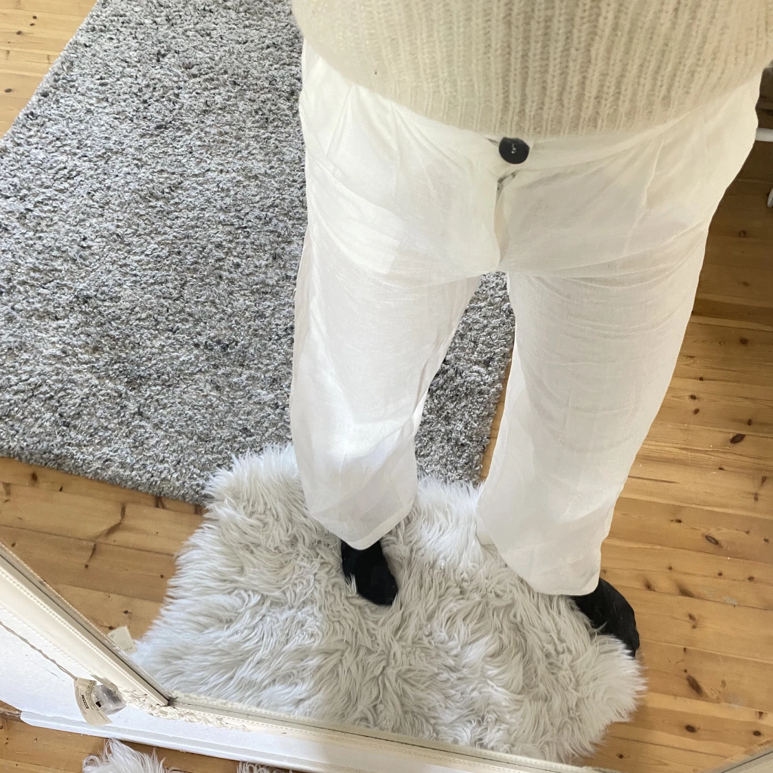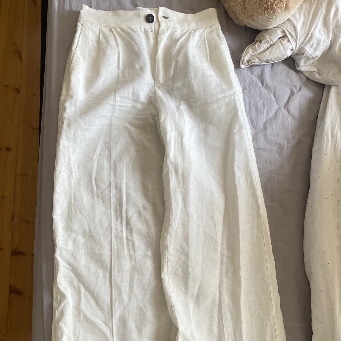 Säljer mina nya linnebyxor från Bershka, stolek S Säljer pga att dom är för små får mig☺️