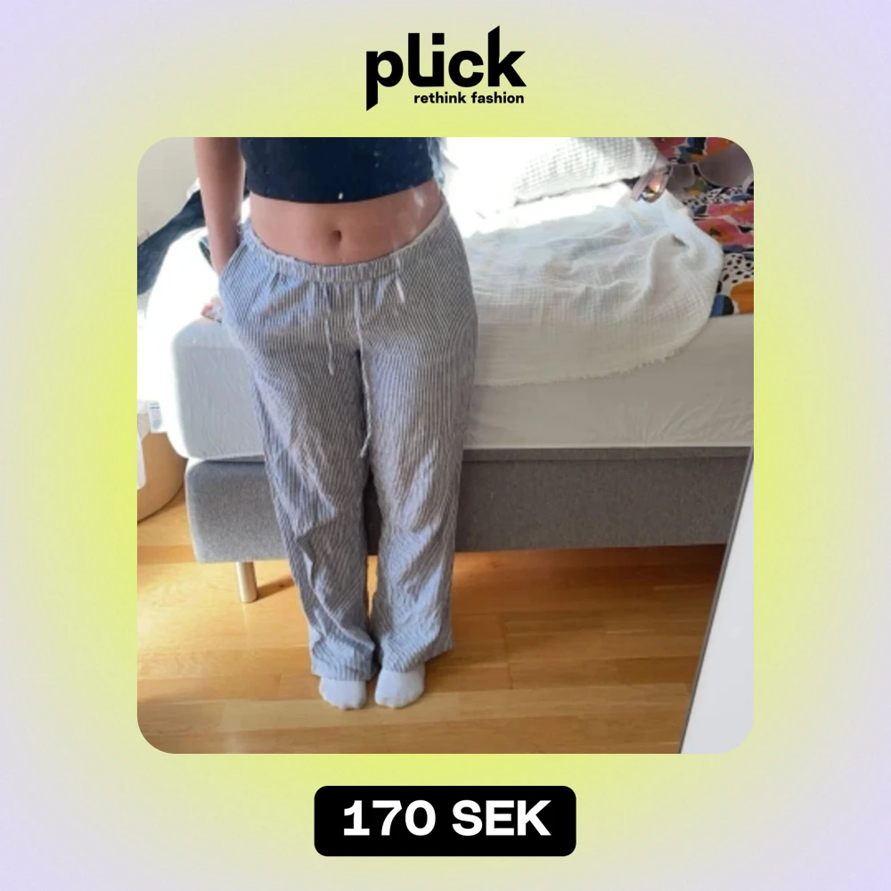 Randiga linnebyxor från Bikbok i storlek xs, byxorna är i gott skick🙂💞nypris 500! Säljer för 170( frakt ingår i priset😇
