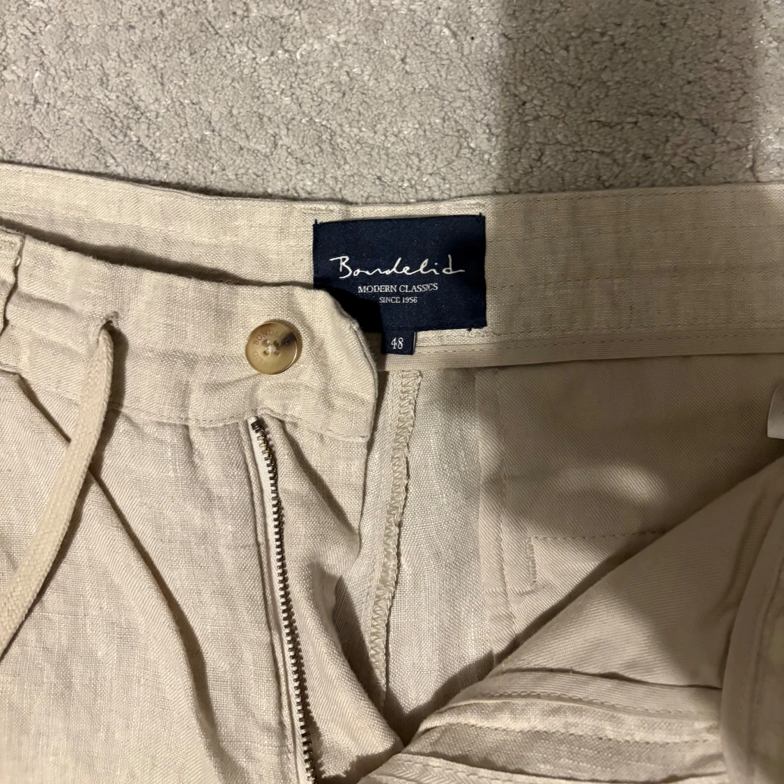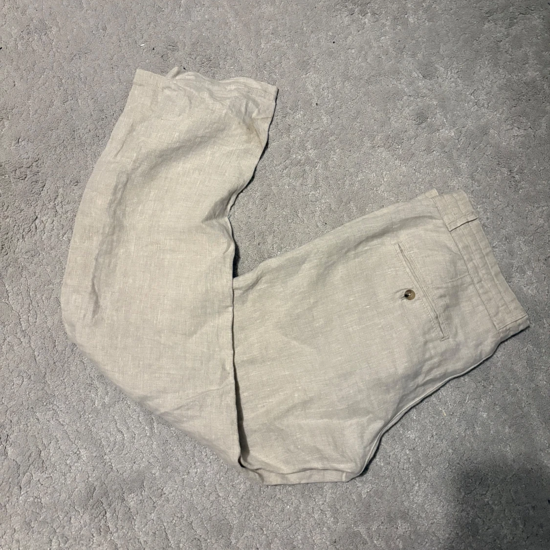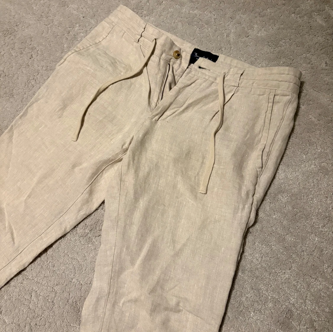 Säljer nu dessa oanvända linnebyxor i storlek 48 vilket motsvarar ungefär M. Nypris ca: 900kr .Skriv vid frågor/funderingar.