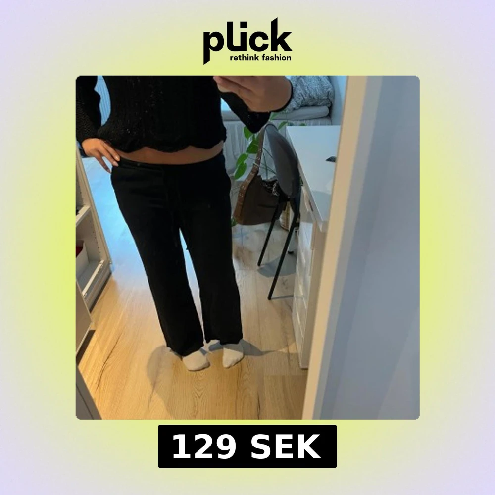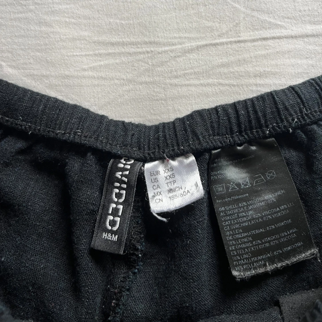 Svarta, populära linnebyxor från H&M med låg midja. De krympte lite i tvätten så nu är de lite för korta för mig som är 160. Storlek XXS men passar även som XS!