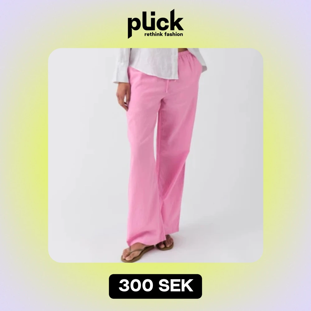 Snygga och bekväma Linen blend trousers med en härlig rosa färg från Gina tricot! Aldrig använda! Nypris 400 kr, säljer för 300 kr + frakt🩷✨🤍 är i elastiskt material och går att justera med snören i resåren!💫⚡️✨