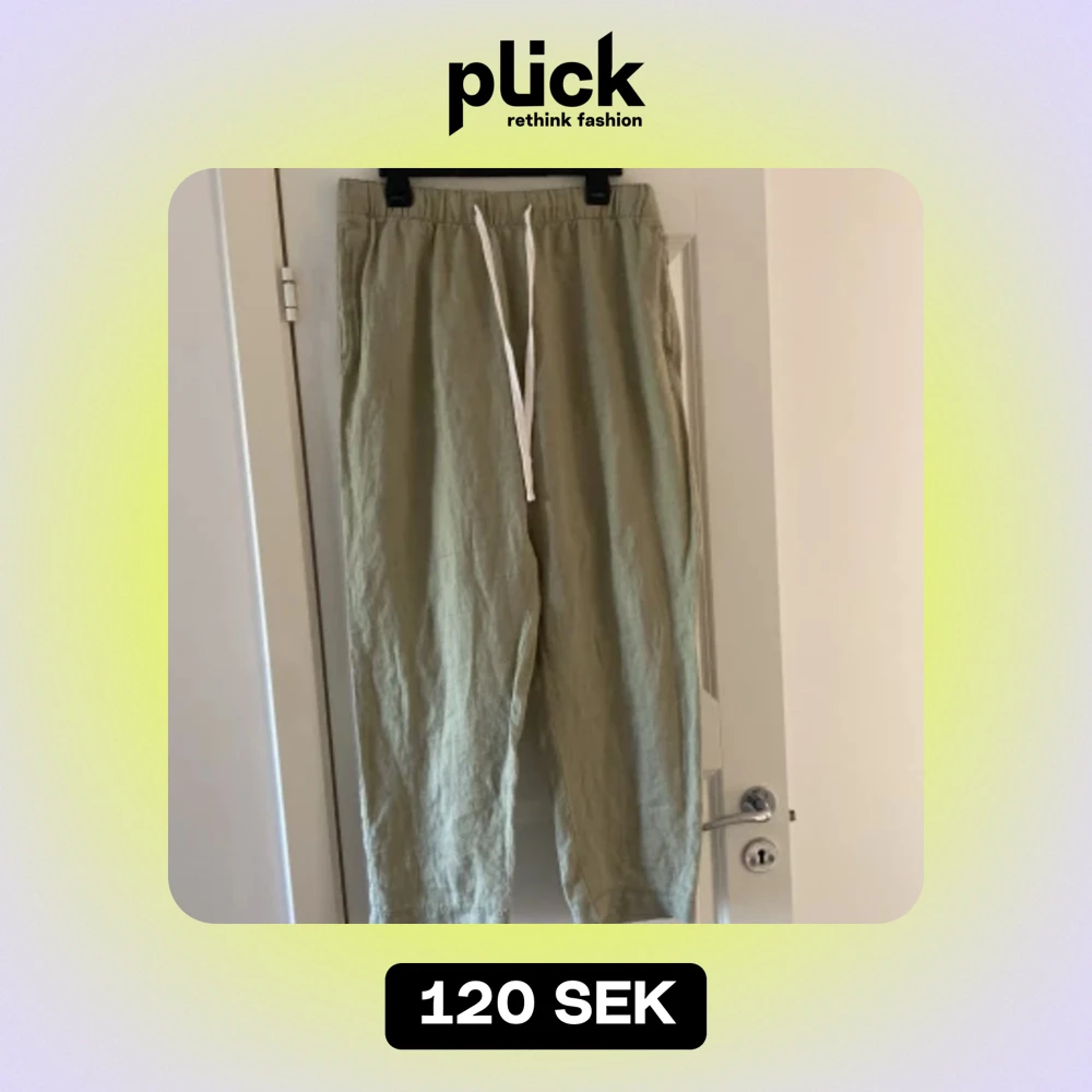 Linnebyxor från H&M i storlek M. Bra sick men lite noppriga.