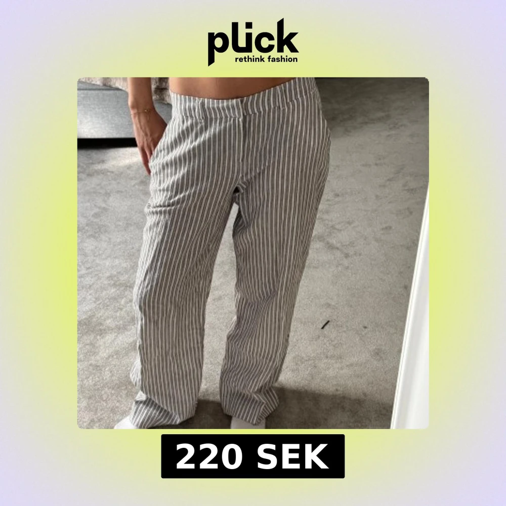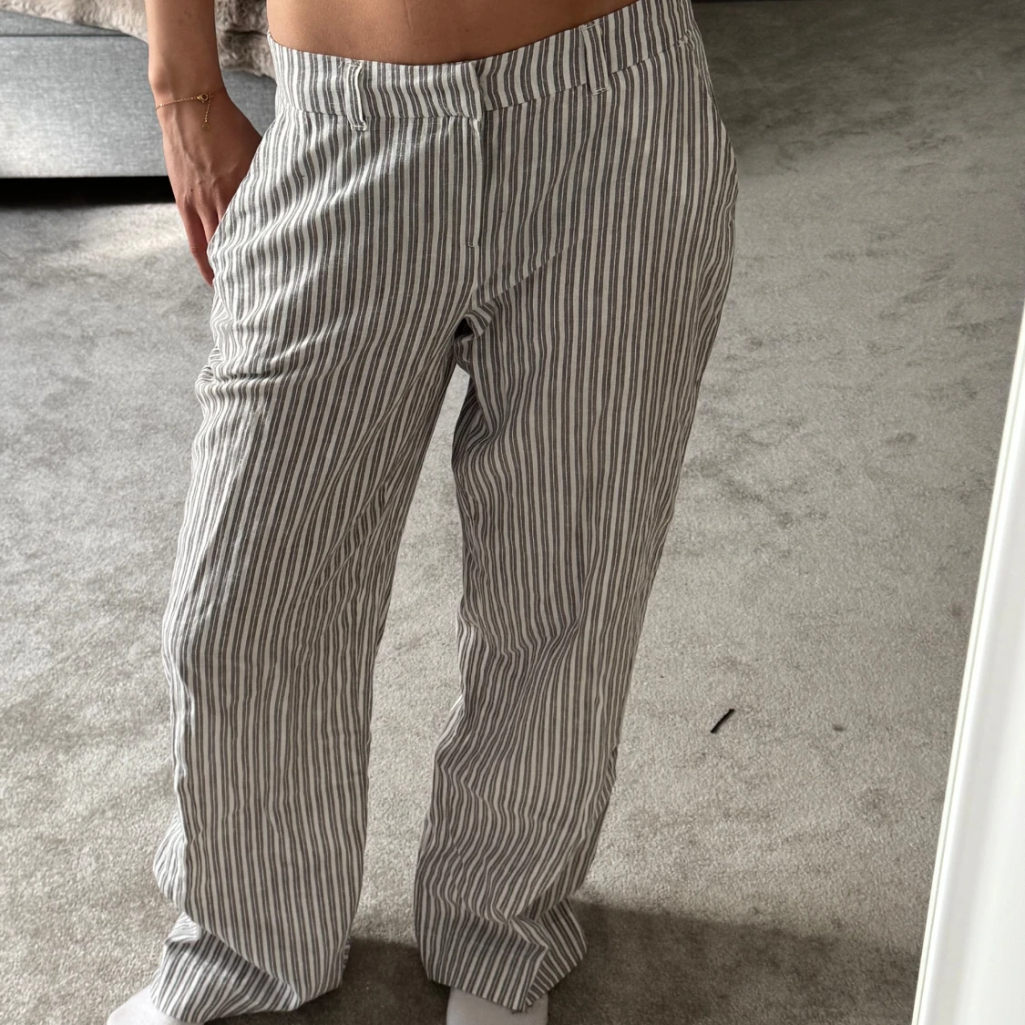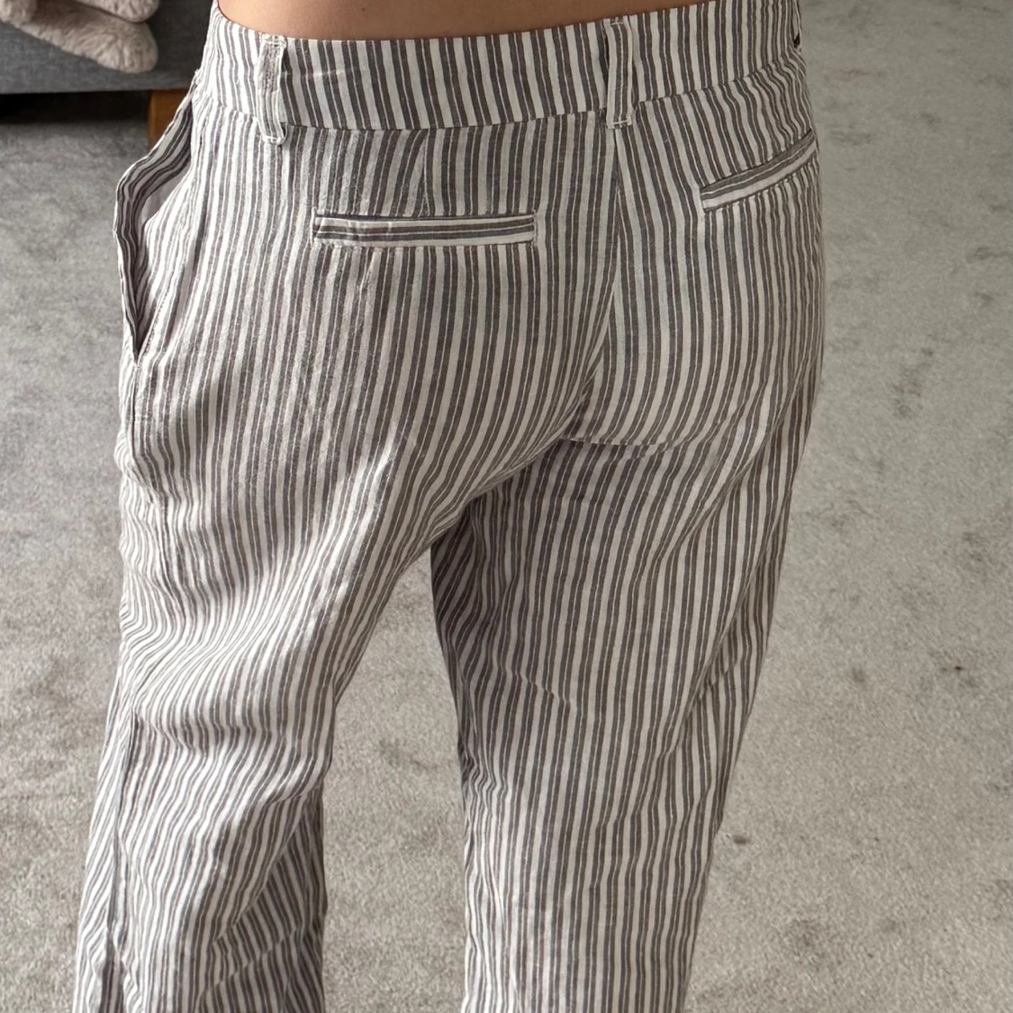 Randiga linnebyxor från Ginatricot med knapp och dragkedja i storlek 34