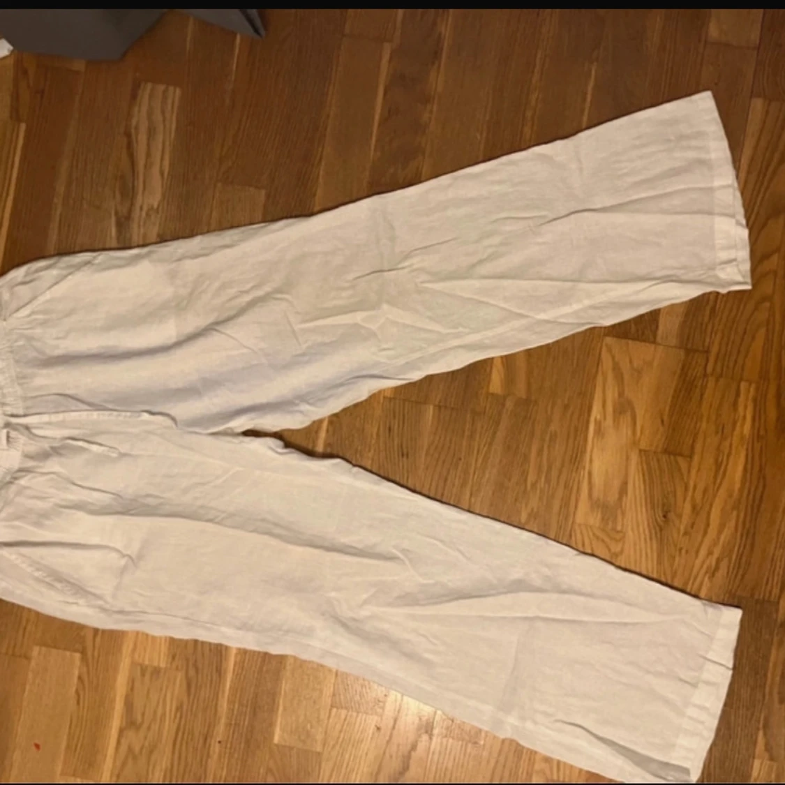 Snygga vita linnebyxor med en avslappnad passform. Perfekta för varma dagar med sitt lätta och luftiga material. Byxorna har en rak och vid stil som ger en skön känsla.