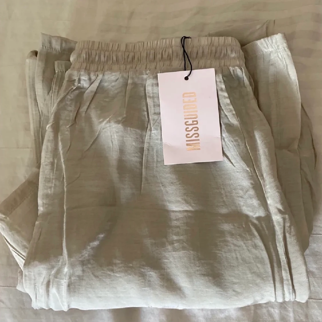 Väldigt fina silkesbyxor från missguided!! Slutsålda och dessa är i storlek 38 och väldigt långa i benen💗 (prislappen sitter kvar och är endast testade)