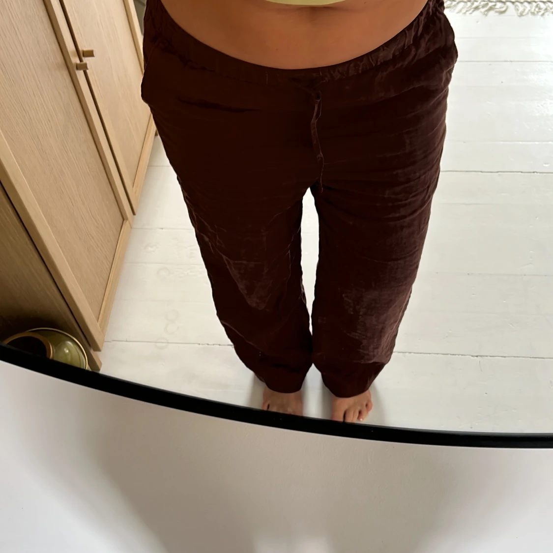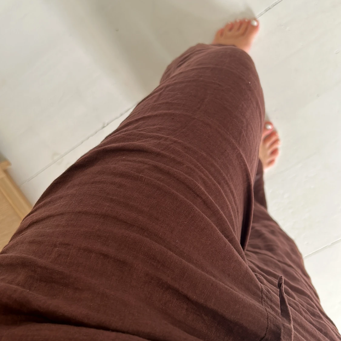 Dem perfekta lowwaist linnebyxorna i brun. Köpta på Arket förra året, finns inga defekter. Storlek S