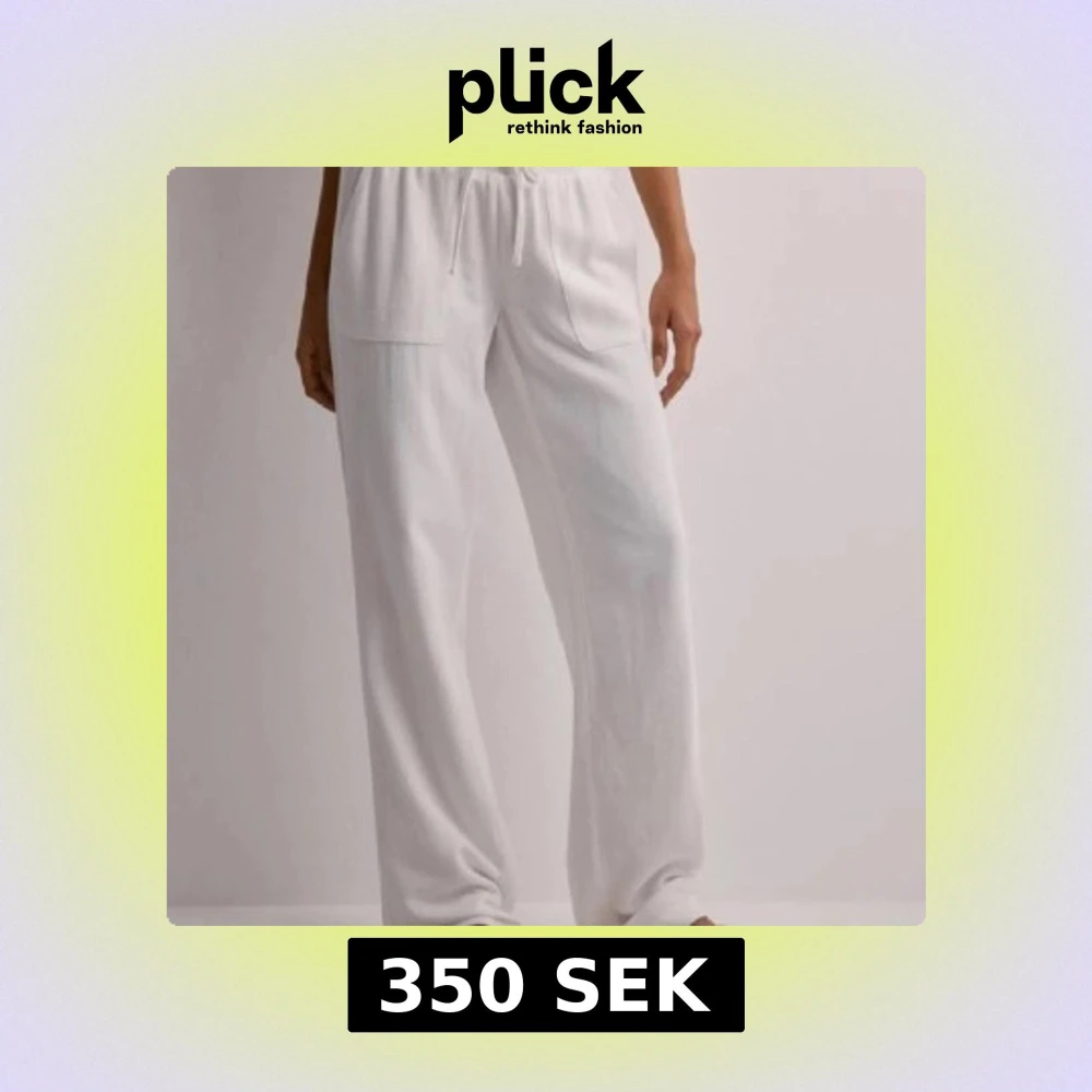 Snygga och bekväma vita linnebyxor med elastisk midja och snörning. Byxorna har en loose passform och raka ben, vilket ger en avslappnad stil. Perfekta för varma dagar.