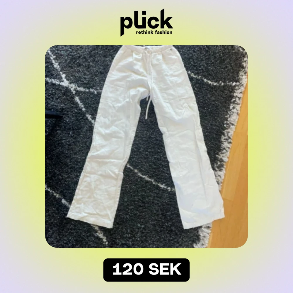 Linnebyxor från pullandbear i storlek xs, byxorna är i gott skick☺️säljer för 120 där frakt ingår 💞 Nypris 300:)