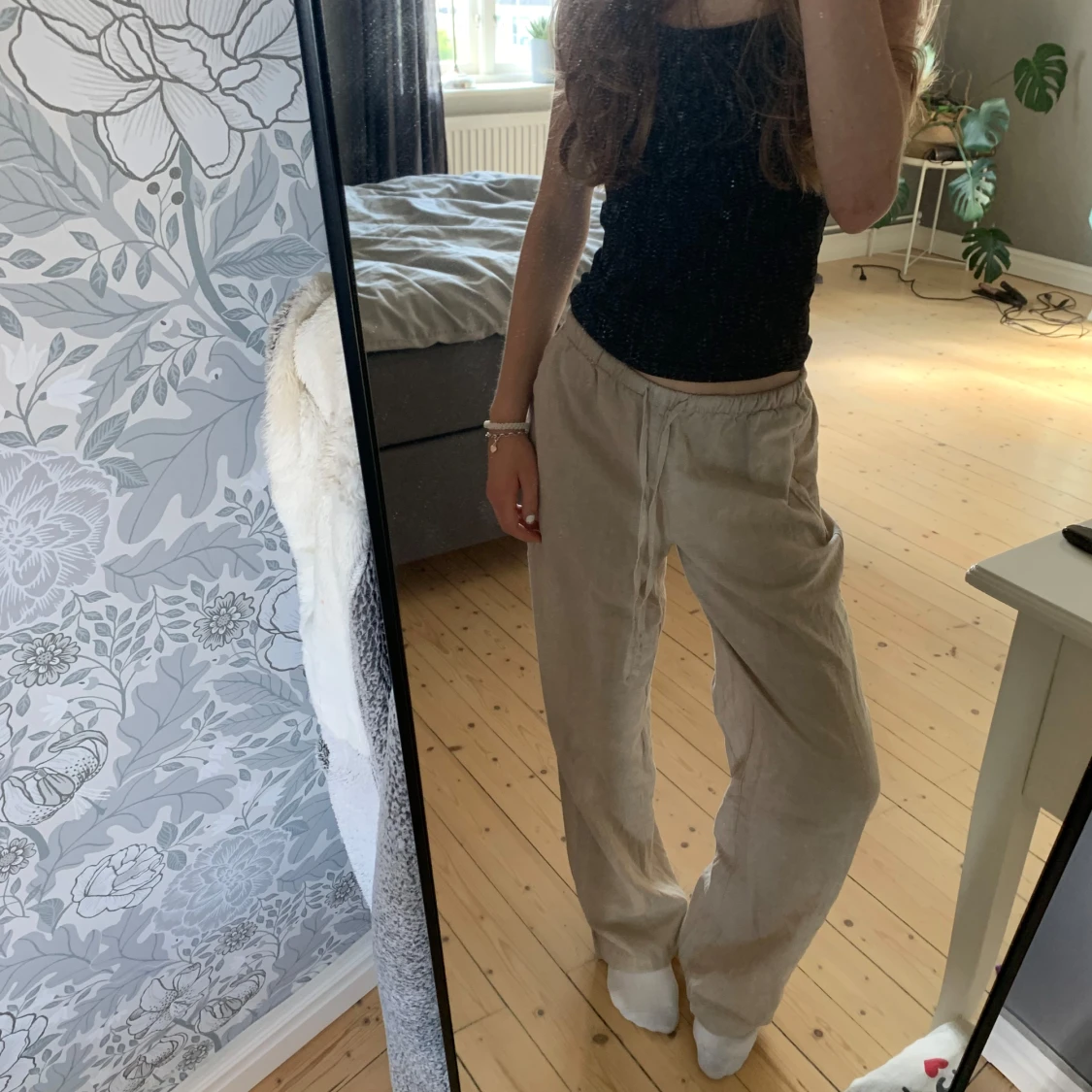 Säljer dessa jättefina linnebyxor ifrån Gina Tricot, Premium Quality. Endast använda en gång, alltså i nyskick💗 Nypris ca 400-500 kr