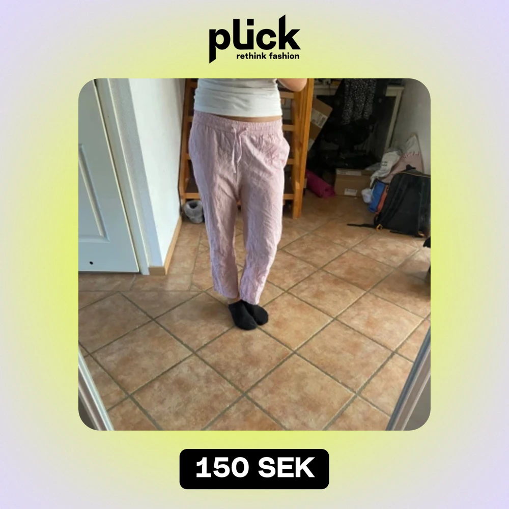 Super gulliga rosa randiga lågmidjade linne byxor som tyvärr är för korta för mig. Storlek xs/160