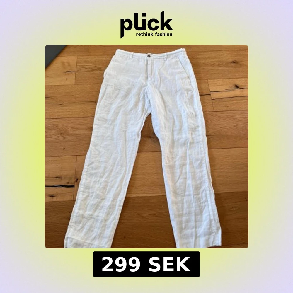 Säljer ett par vita linnebyxor från Zara i storlek S. Byxorna är i toppskick!
