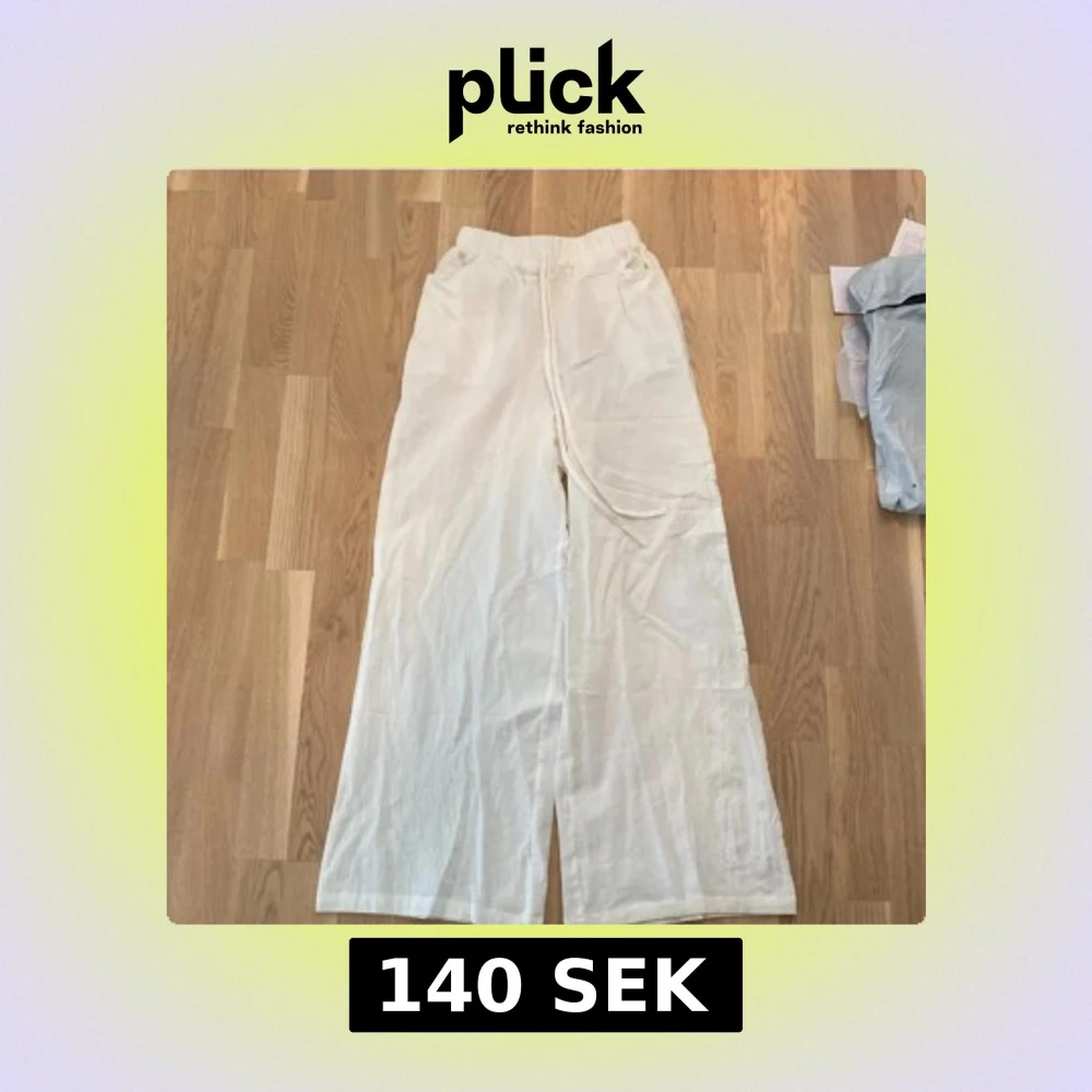 Säljer ett par ”linnebyxor” i storlek xs men borde passa en xxs också. Tjejen jag köpte av sa att det var linnebyxor men är egentligen 100% Bomull. Oanvända endast provade. Bilderna är lånade från förra ägaren men kan skicka egna om så önskas😊