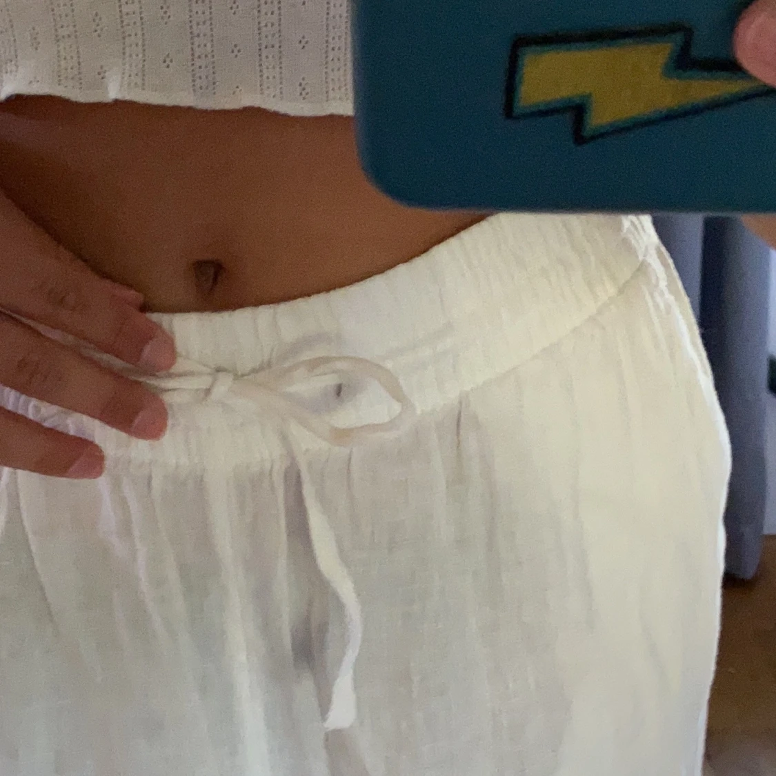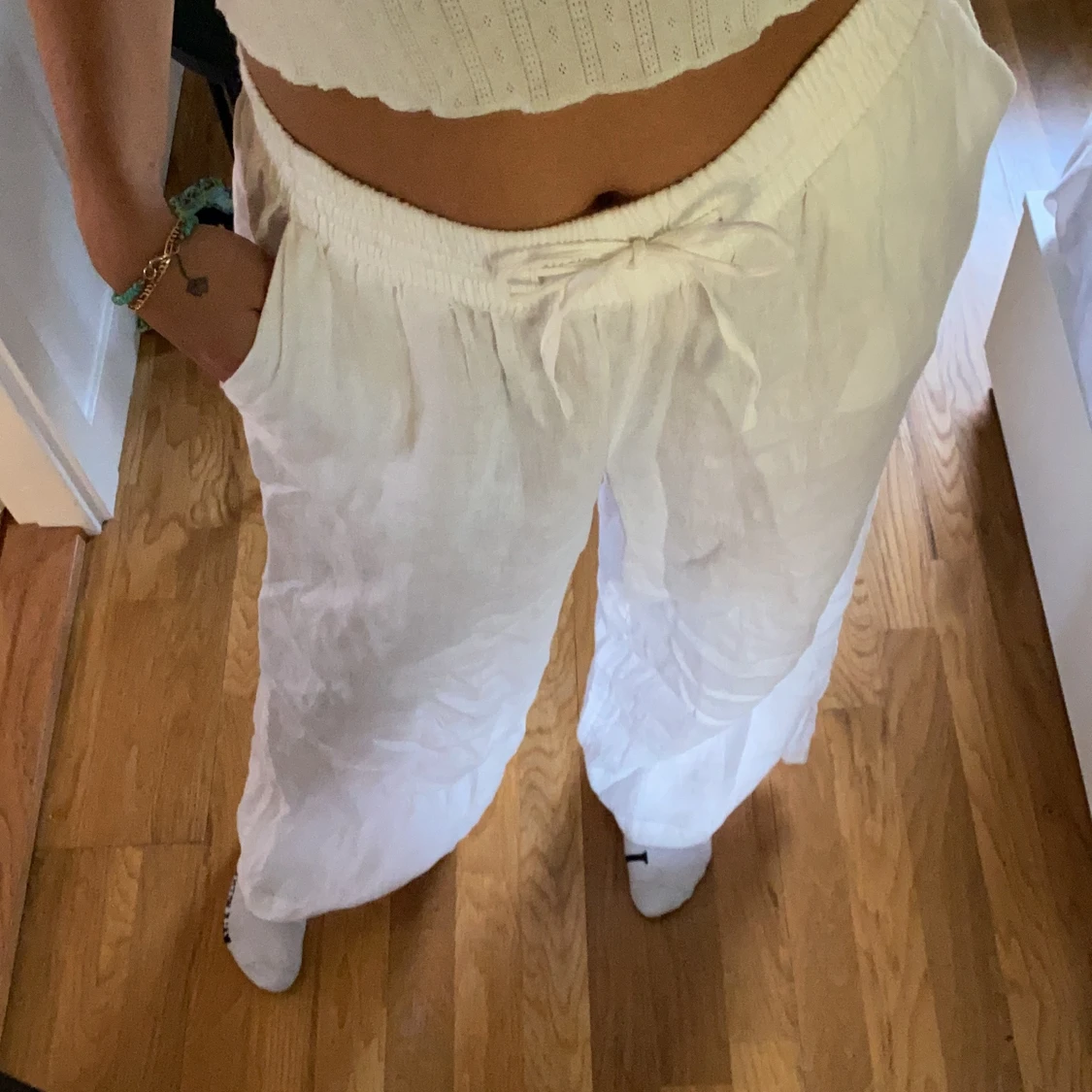 Vita linnebyxor från Gina, använts ett fåtal gånger, sälgs pga de inte riktigt sitter som jag vill ha de. Köpta i storlek M men pssst även storlek S beroende på önskad passform.