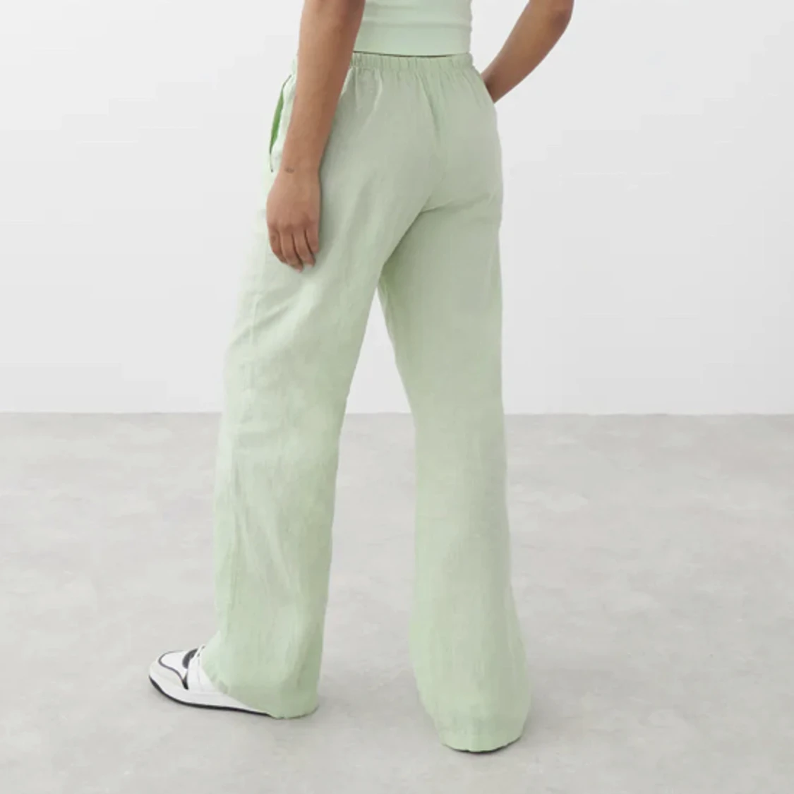 Gröna linnebyxor från Gina storlek S. Helt nya använda 1 gång, inte min stil. Köptes för 400🌺🌸🌱🌷gröna lågmidjade eller högmidjade