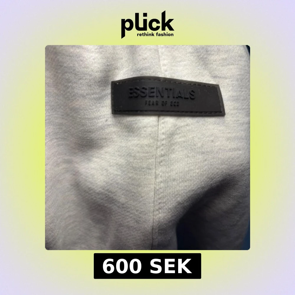 Snygg ljusgrå mjukisbyxor från Essentials Fear of God med svart logga på och den är bekväm att ha på sig.