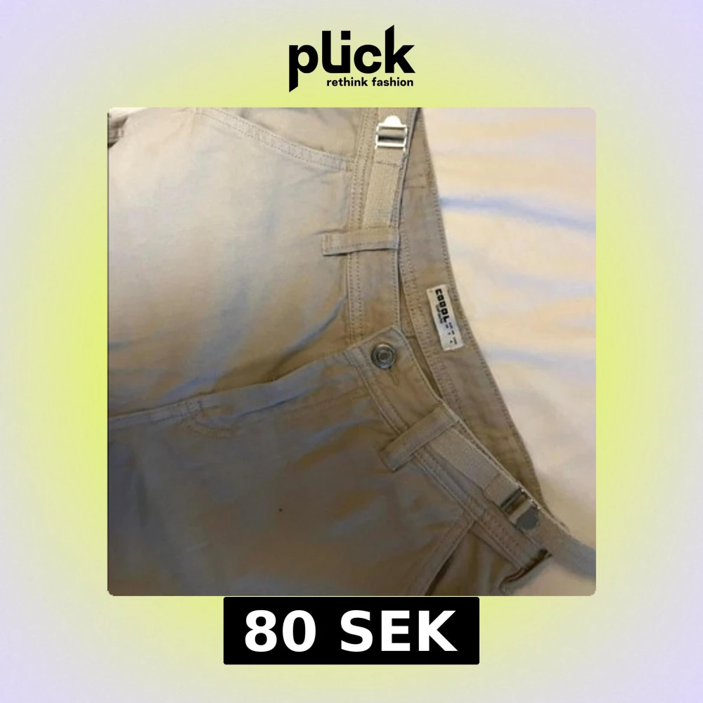 Snygga ljusgråa cargobyxor med praktiska fickor på benen och justerbara spännen i midjan. Använd några fåtal gånger