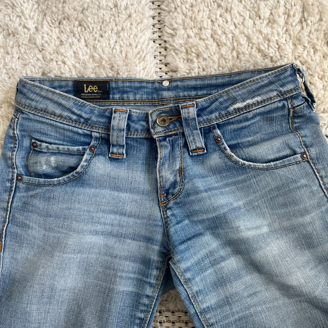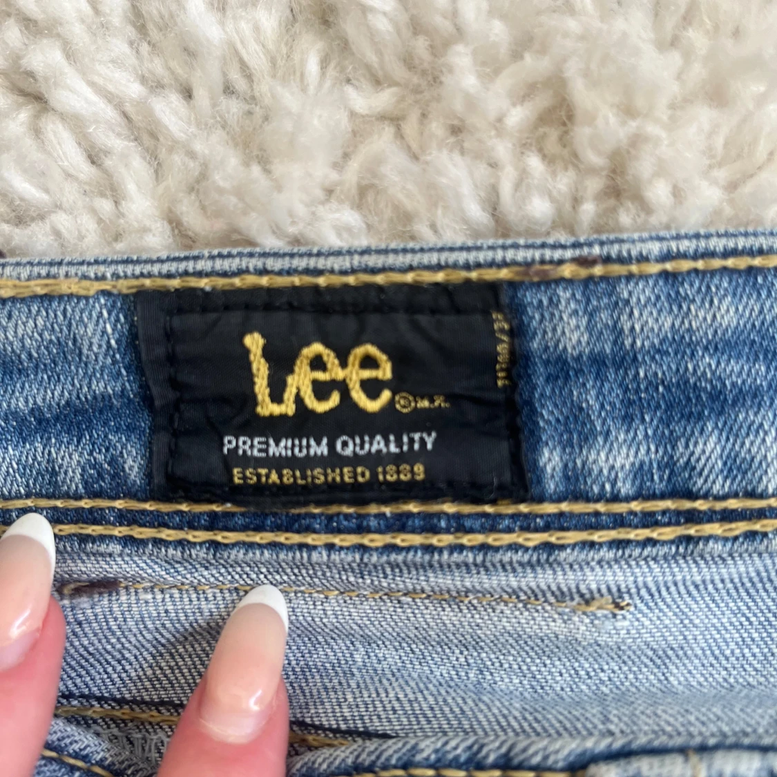 Skit snygga Lee jeans. dem kommer inte till användning tyvär men det är inget fel på dem!❤️ står ingen storlek men jag har 40 rakt över midjan och dem sitter perfekt. dem är avklippta så dem skulle passa någon som är runt 165 max.