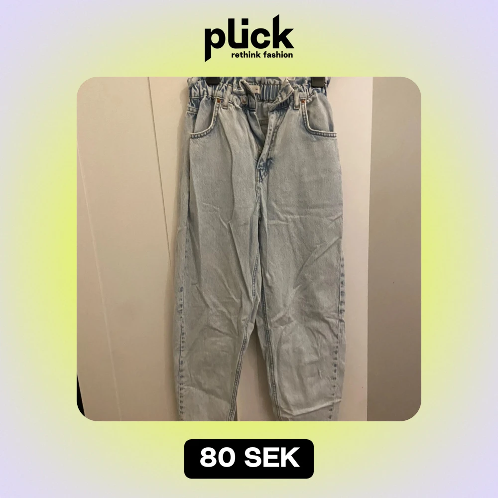 Säljer ett par ljusa jeans från Gina tricot i storlek 34. De har en högmidjad design med elastisk midja. Perfekta för en avslappnad stil och passar till alla säsonger. Använda men i bra skick.