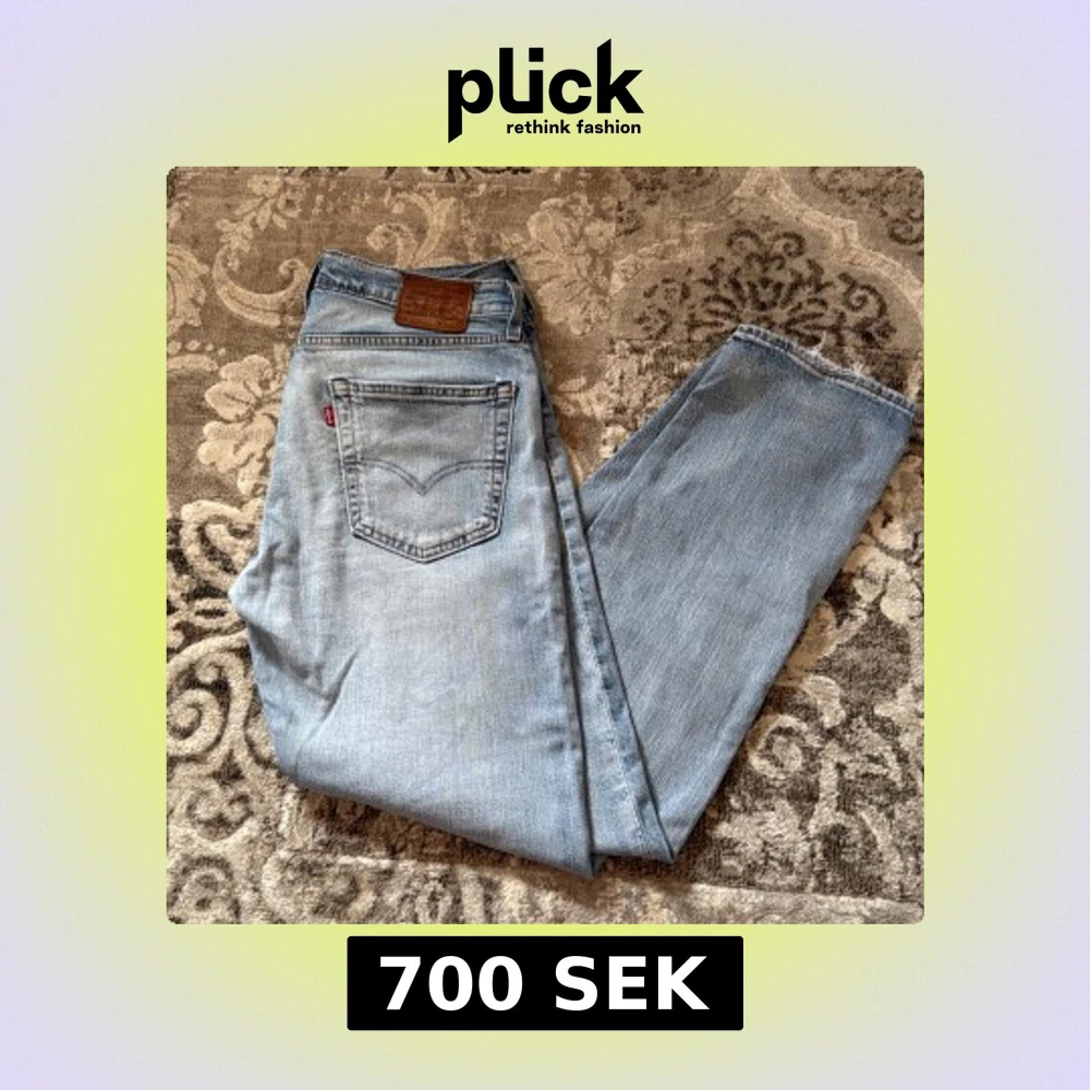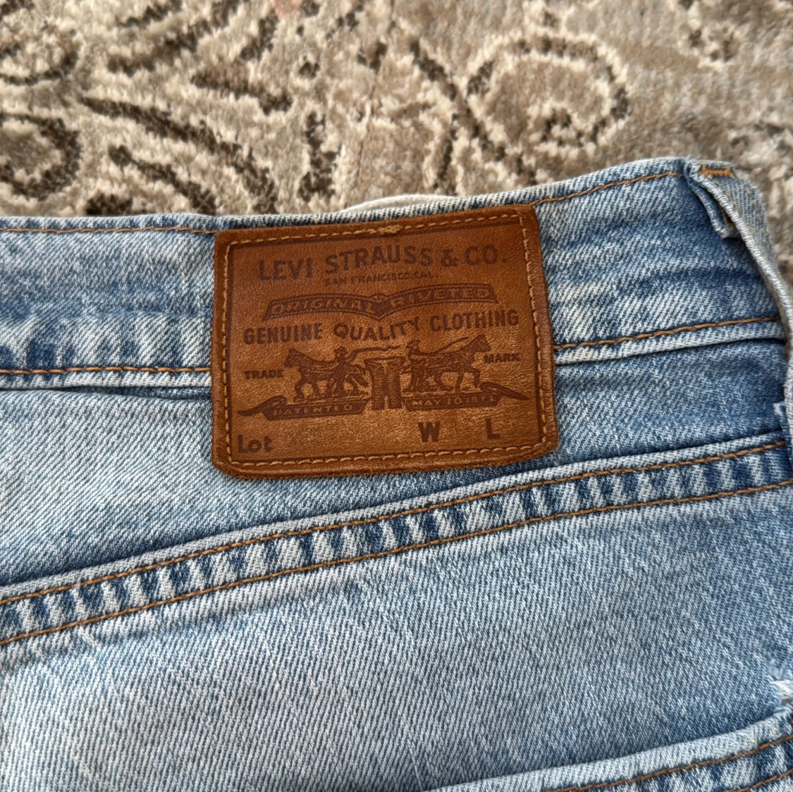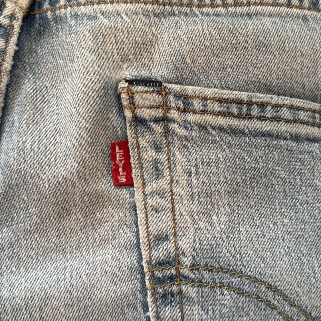 Säljer ett par ljusa jeans från Levi's med klassisk femficksdesign och en snygg läderpatch baktill. Jeansen har en rak passform och är perfekta för en avslappnad stil. De är tillverkade i slitstarkt denim och har en ikonisk röd etikett vid bakfickan. Och är använd få par gånger