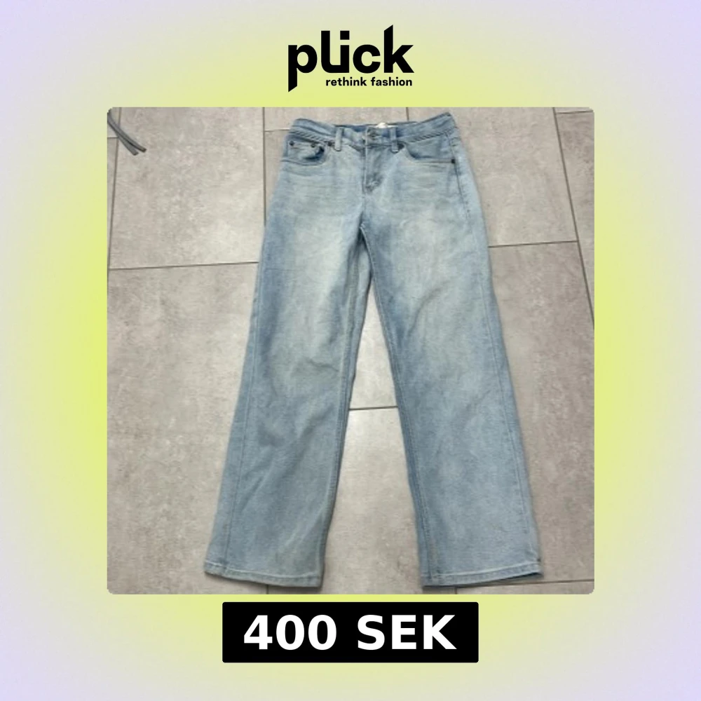 Säljer ett par ljusa jeans från Levi's med en avslappnad passform. De har en klassisk femficksdesign och en läderpatch med logga baktill. Perfekta för en casual look!