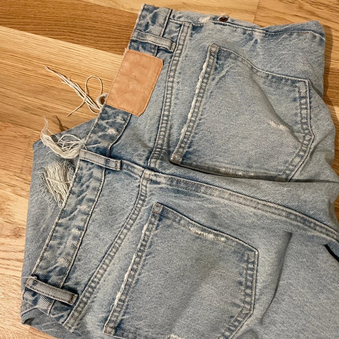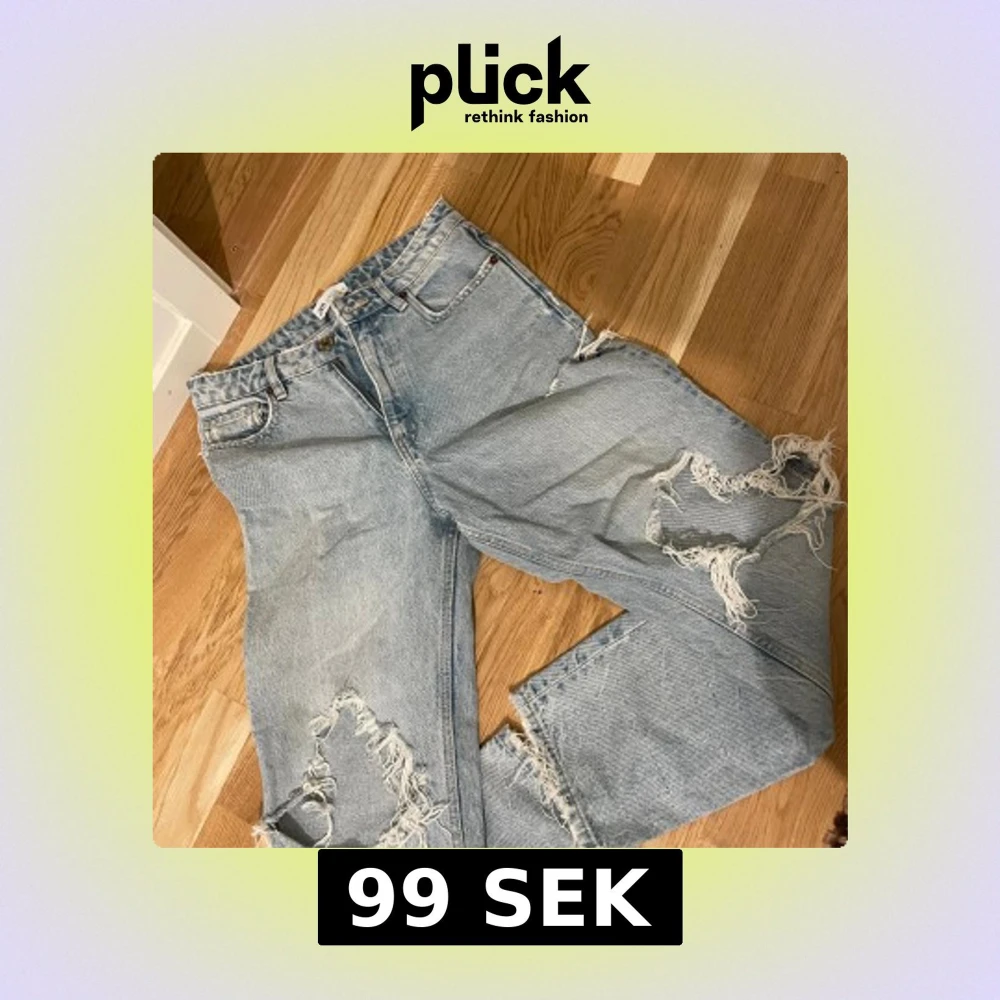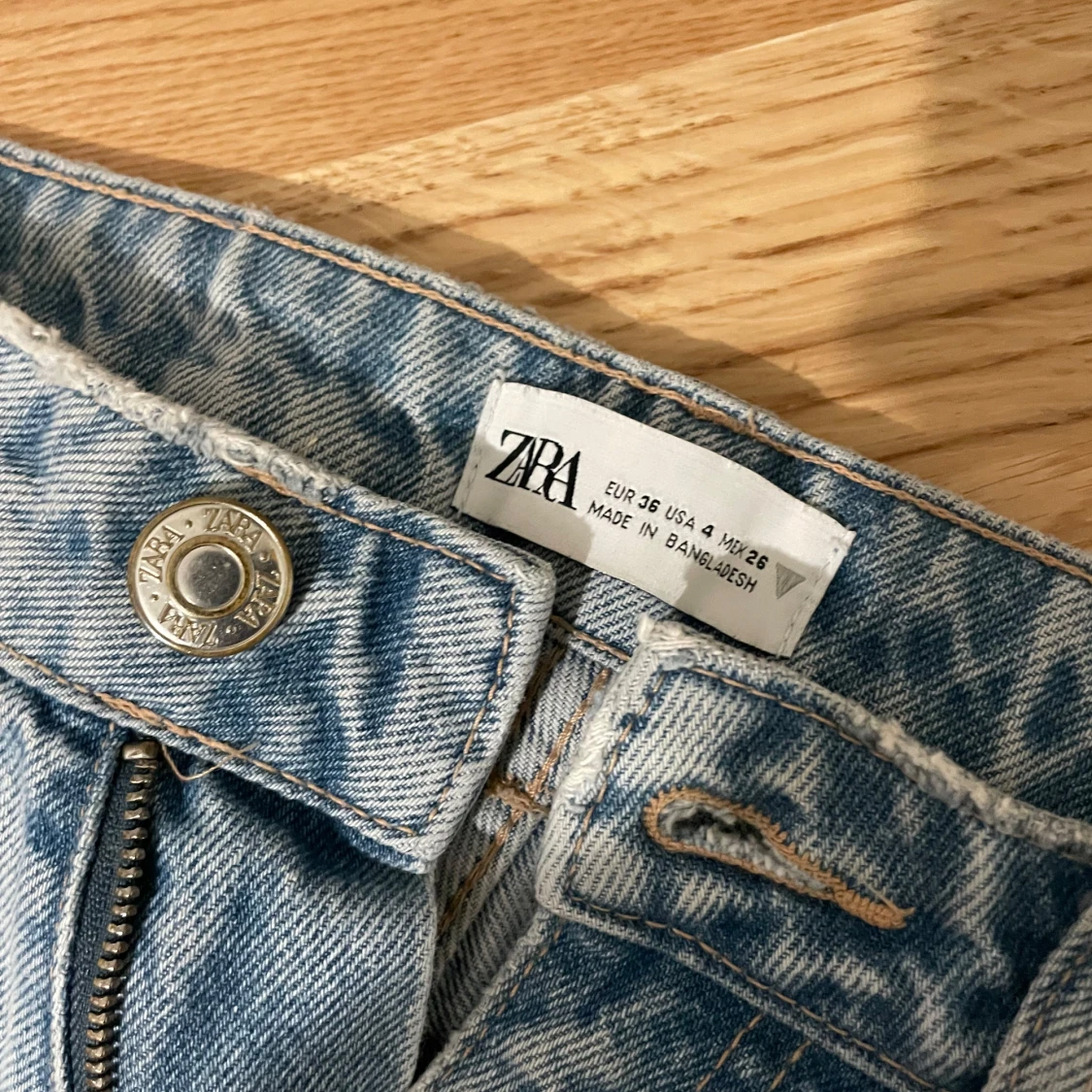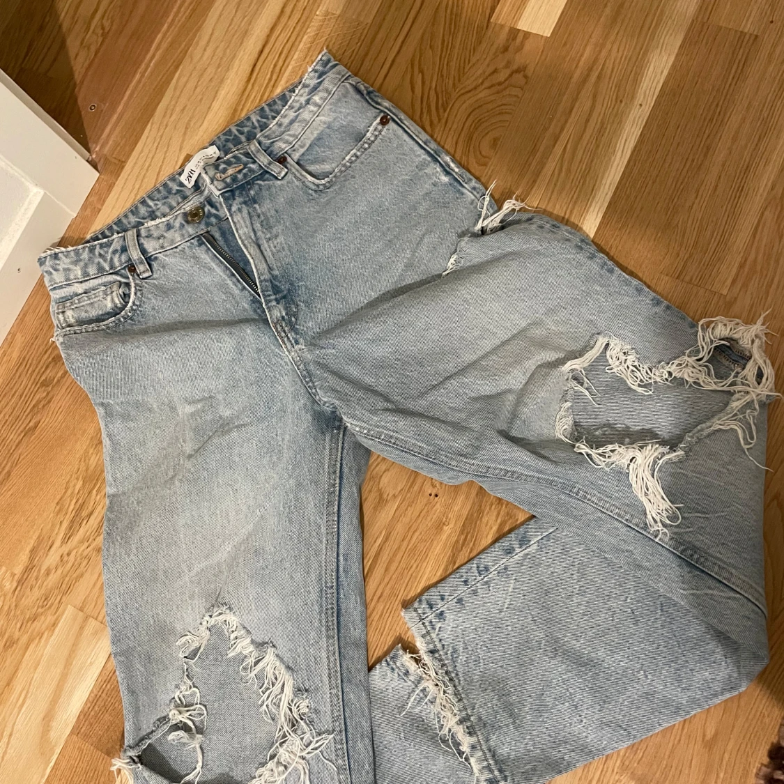 Säljer ett par ljusa jeans från Zara med coola slitningar på benen.