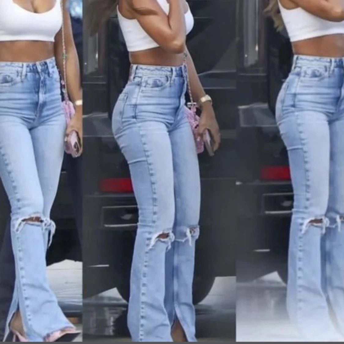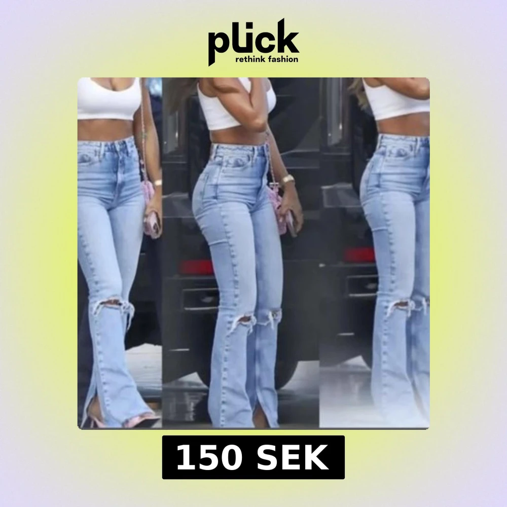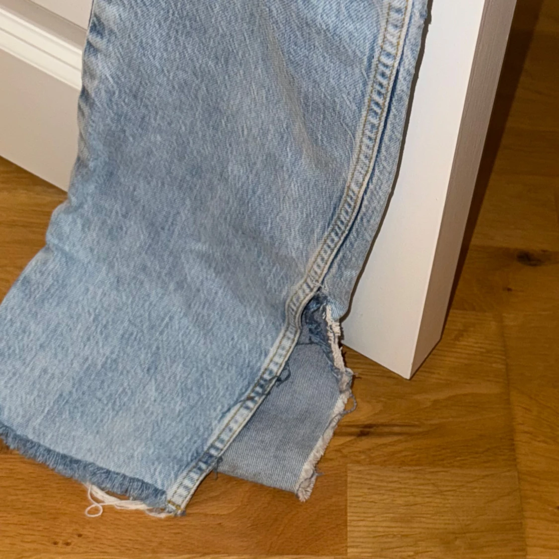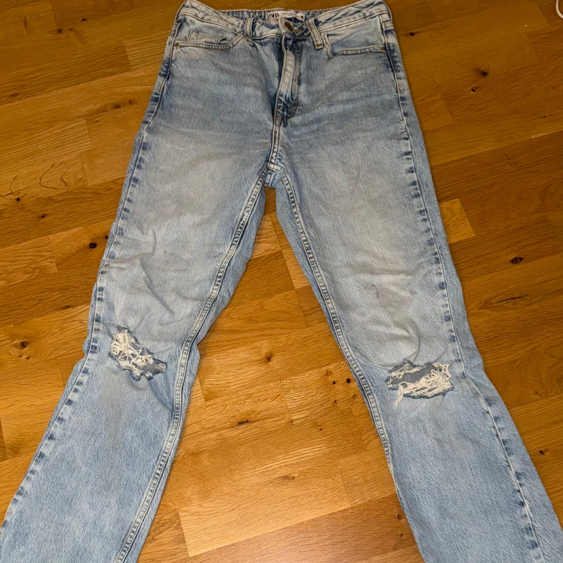 Ljuss Zara jeans med slitningar på knäna på knäna och slits nertill.