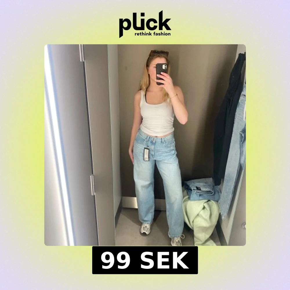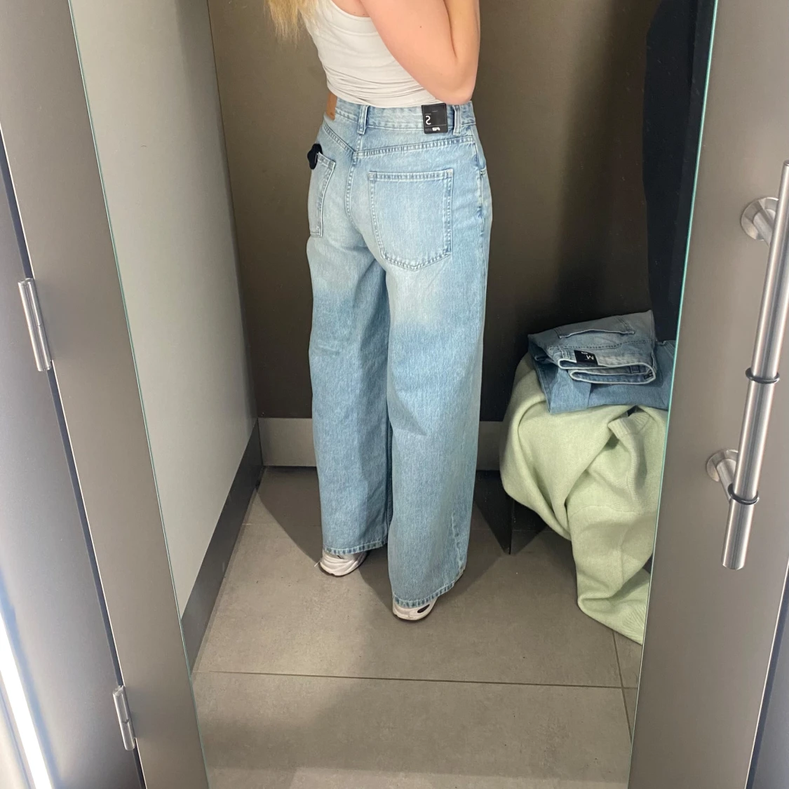 Säljer ett par ljusblå baggy jeans med riktigt breda ben och hög midja. Aldrig använda🩵