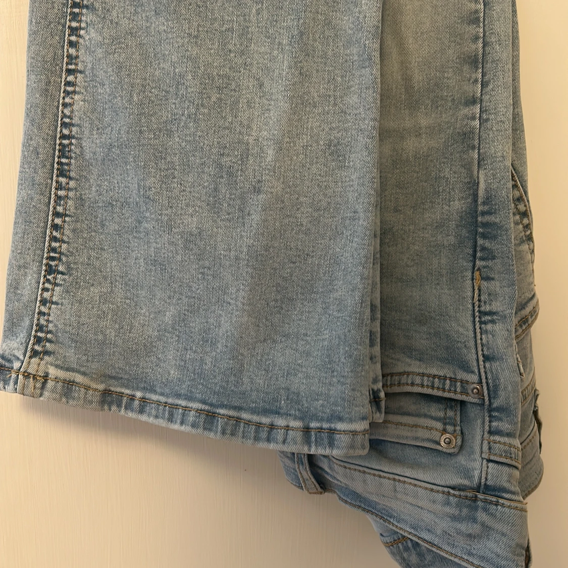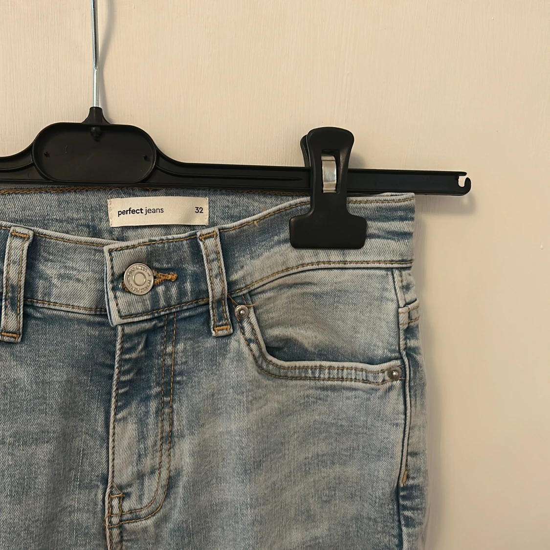 Säljer ett par ljusblå bootcut jeans från Perfect Jeans, Gina Tricot. De har en klassisk femficksdesign och en knappgylf, samt lågmidjade. Perfekta för en avslappnad stil med en modern twist. Oanvända.