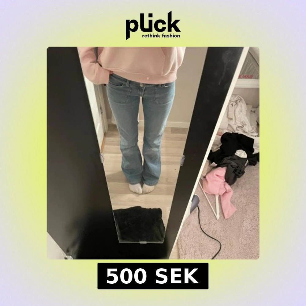 Säljer ett par ljusblå low waist jeans. Jeansen är i ett bra skick och är ifrån Nelly