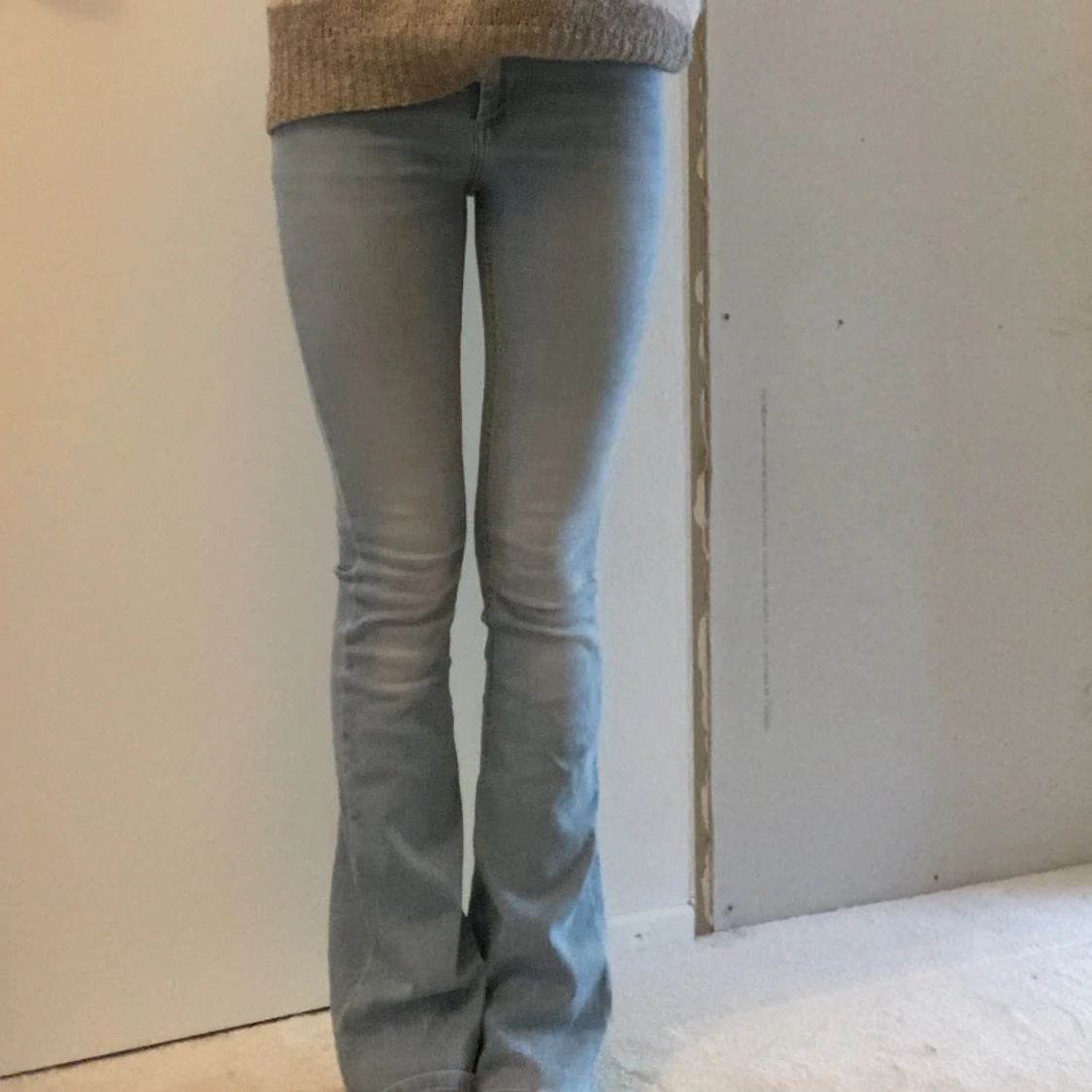 Säljer ett par ljusa bootcut jeans. Jeansen är mid waist som man ser på bilderna. Jeansen är i stretchigt denim så dem passar de flesta storlekar. Kontakta mig gärna vid frågor💕