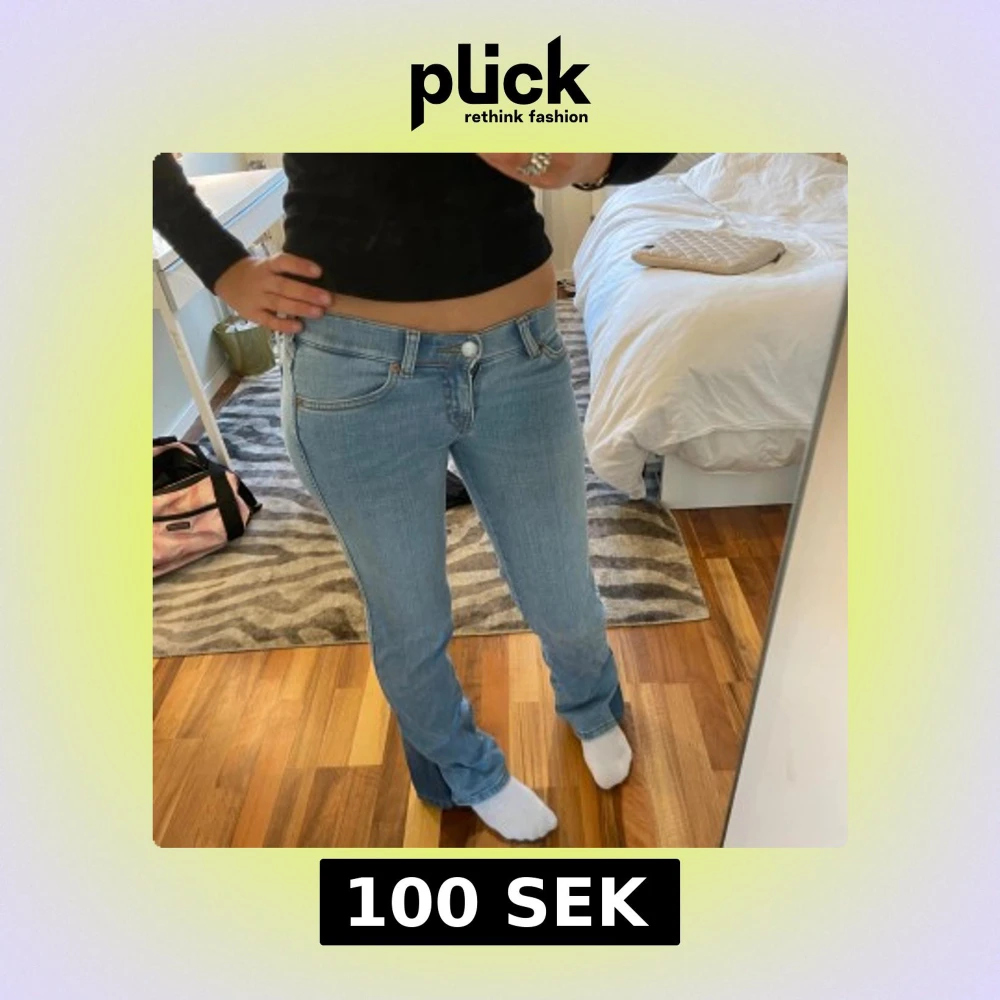 Säljer ett par ljusblå jeans från Wrangler. Jeansen är utsydda där nere.
